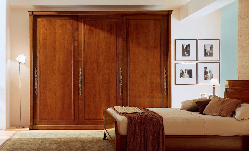 Closet Art.1038 N Italian manufacturer Bizzotto. Model on a frame of natural wood. Tall Cabinet, rectangular with sliding doors. The color of natural wood. Decorated metal figural elements. Color to be selected from the catalog factory. Perfectly complement the classic interior walk-in closet or bedroom.