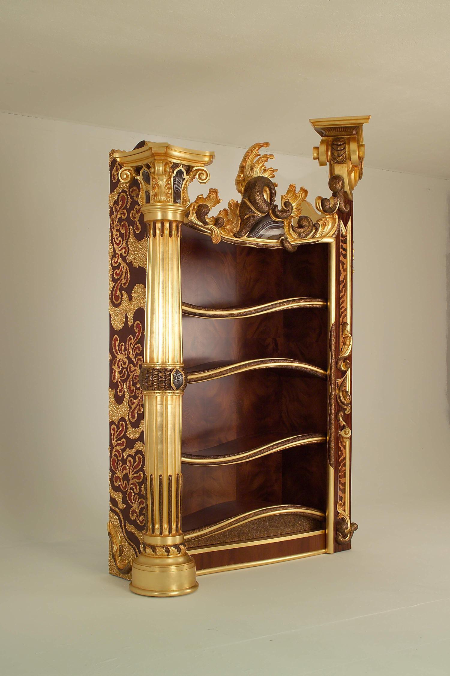 Bookcase Esmeralda from Italian manufacturer Colombo Stile. Carving handmade by natural wood. Finishing gold leaf with patina. The model is made in modern style. Colours in stock.