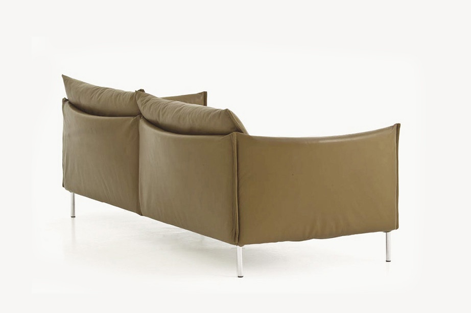 Two seater sofa Gentry from the Italian manufacturer Moroso. The frame is made of steel filled with polyurethane foam and polyester fiber. Base in chrome, black chrome or painted. Back cushion, armrests and extra pillows in goose down. Upholstery textile or natural leather colours to choose from a catalog company. The model has many options of sizes. A great option for your living room in modern style.