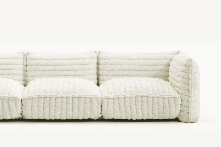 Three seater sofa Paper Cloud from the Italian manufacturer Moroso. The frame is made of steel, the filler is polyurethane foam of different densities. Upholstery made of stretchy fabric with embossed, washable in water (at 30 °), specially designed by Y. Tokujin designer, in white or black color. Three seater sofa in shape and decoration reminiscent of the cloud that will certainly complement your modern living interior.