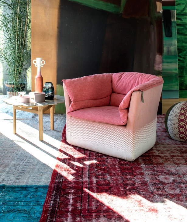 Coat the chair from the Italian manufacturer Moroso. Frame model made of steel, filled with polyurethane foam. Optional factory offers decorative pillows from goose down. Upholstery textile, the choice of colors in stock. The chair will beautify your living room interior in modern Styley