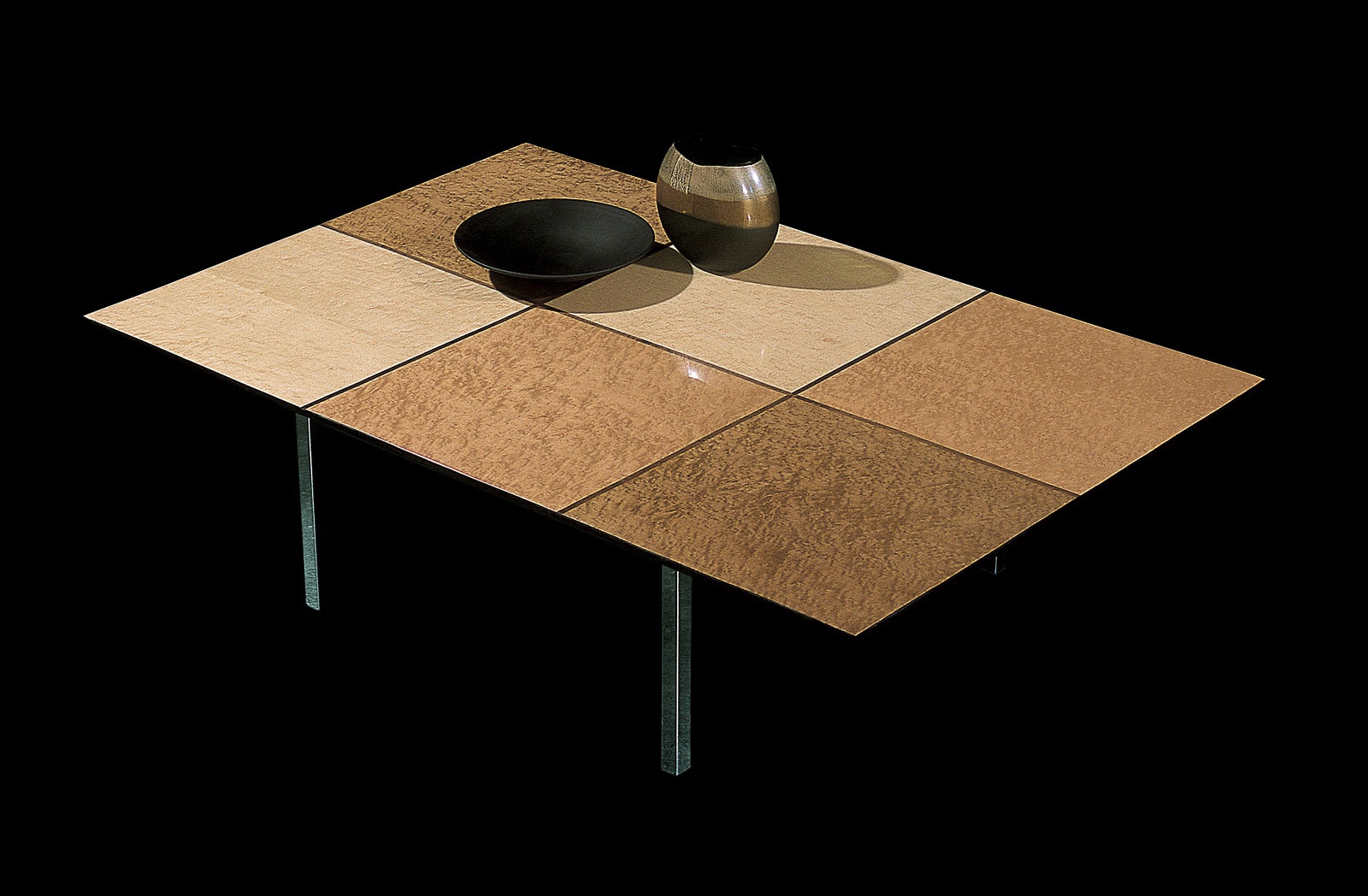 Square coffee table from Italian manufacturer Il Loft. Model with a frame and legs made of chromed steel. Top square or rectangular made of wood in different shades. Color and texture in the catalog of the manufacturer. Model of modern design.