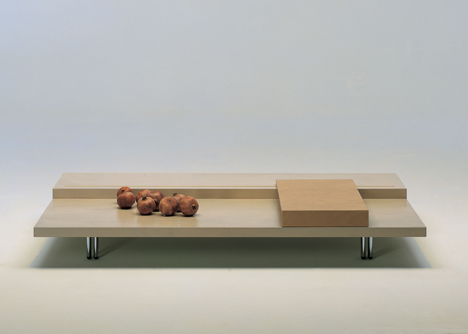 Coffee table/coffee Time from the Italian manufacturer Il Loft. Model with legs of chromed steel. Top is made of solid wood. The surface is lacquered. Color and texture - catalog of the manufacturer. The modern design.