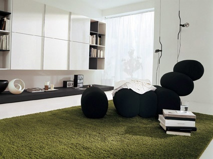 The unusual chair shape with metal legs, Bruco - Presotto, with covering from textile. Model in the style of pop art, colors according catalogue. Make a highlight in Your interior.