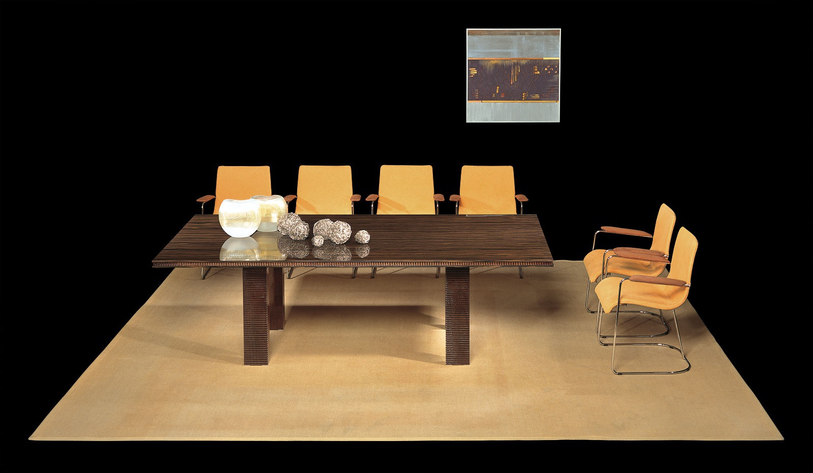 The Lam dining table from Italian manufacturer Il Loft. The frame and legs are made of passirovannogo wood inlay. The top layer of wood with inlaid pattern around the perimeter. The surface is treated with varnish from the company portfolio. Model rectangular or oval shape. A perfect choice for a dining room in a modern style.