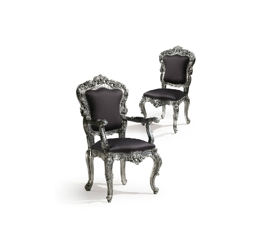 A chair from the Italian manufacturer Angelo Cappellini. Luxury model with a frame made of wood and available with or without armrests. The finishing is executed under the silver. As decor thread. The upholstery is made of textile on the company directory. Design in the classic style.