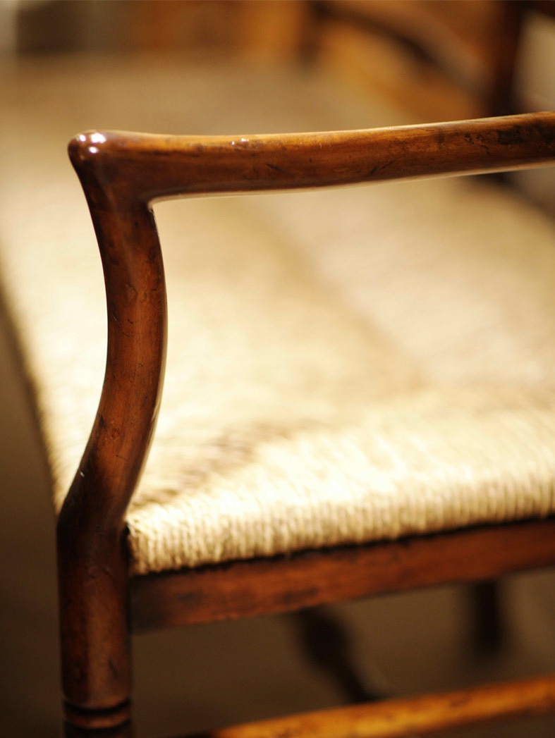 Bench Country Farmhouse from the American manufacturer Jonathan Charles. Double model with armrests and backrest. The bench is made of wood. Designed in country style.