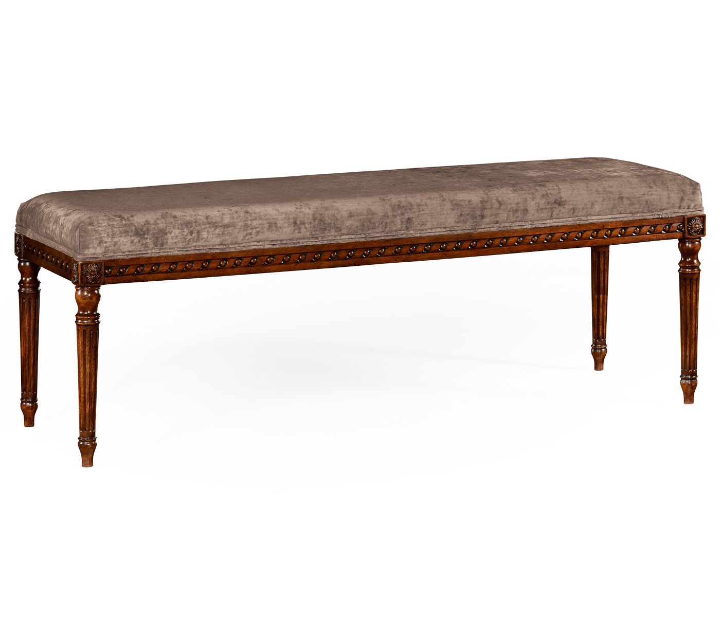 Bench Louis XV from the manufacturer Jonathan Charles. The model in the French style the frame is made of wood and velvet upholstery. The product on fluted legs carved handmade. The manufacturer offers 7 types of finishing and 4 colors of upholstery.