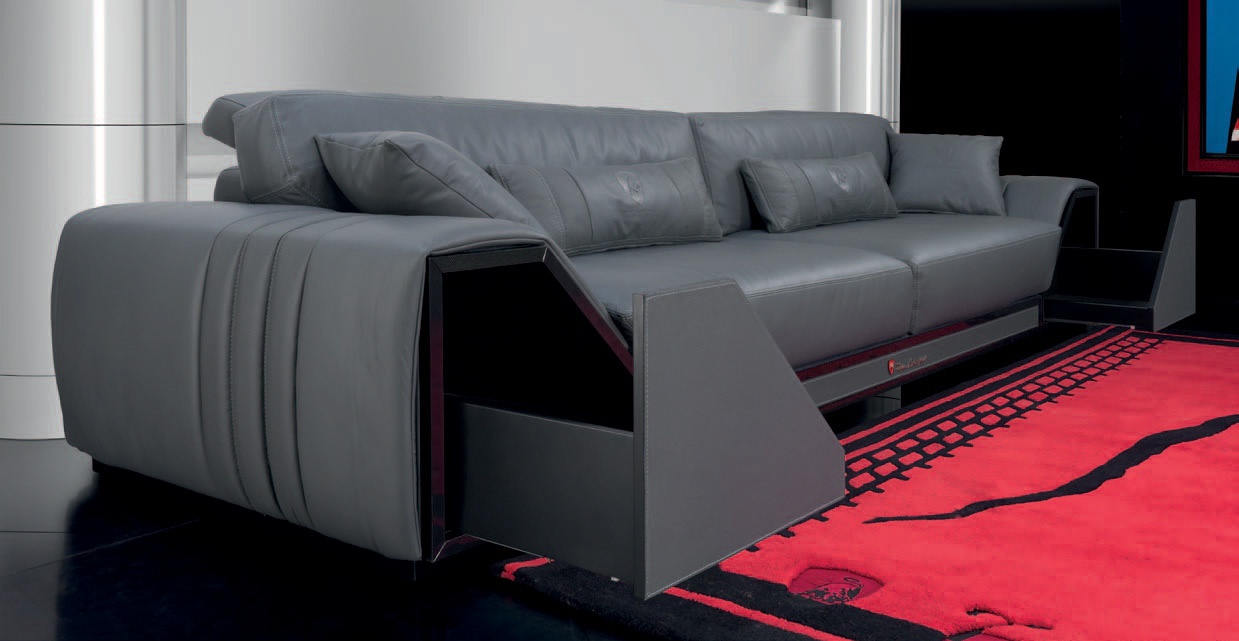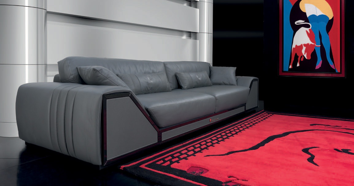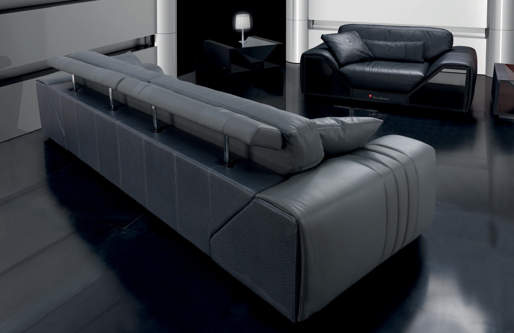 Four-seater sofa Long Beach from the Italian manufacturer Formitalia. Model from the collection of Tonino Lamborghini. The upholstery leather. Offers a wide range of colors. The frame is made of wood and metal.