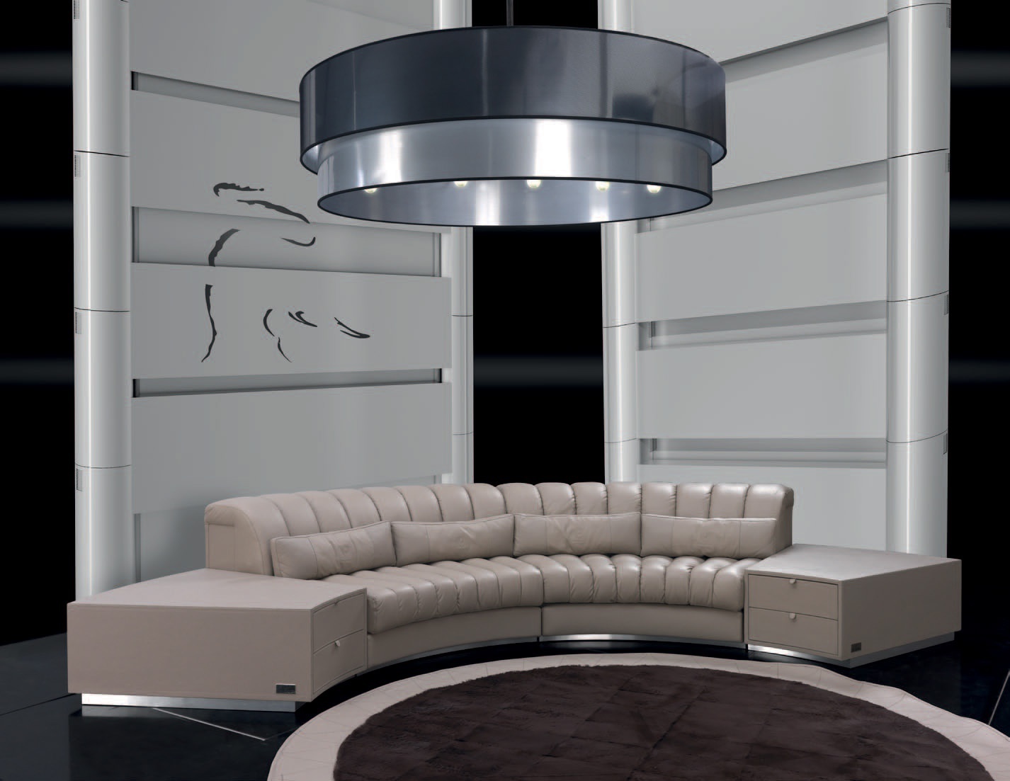 Three seater sofa Zolder from the Italian manufacturer Formitalia. Model of the collection Tonino Lamborghini with wide armrests, are equipped with drawers. The upholstery leather. The frame is made of wood and metal. Offers a wide range of colors.