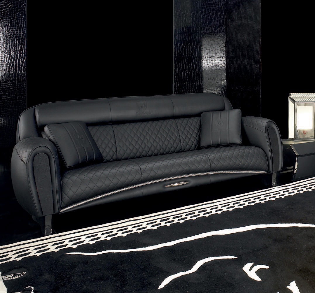 Triple Carbon Imola sofa from Italian manufacturer Formitalia. Model from the collection of Tonino Lamborghini. The upholstery leather. The frame is made of wood and metal. Colours in stock.