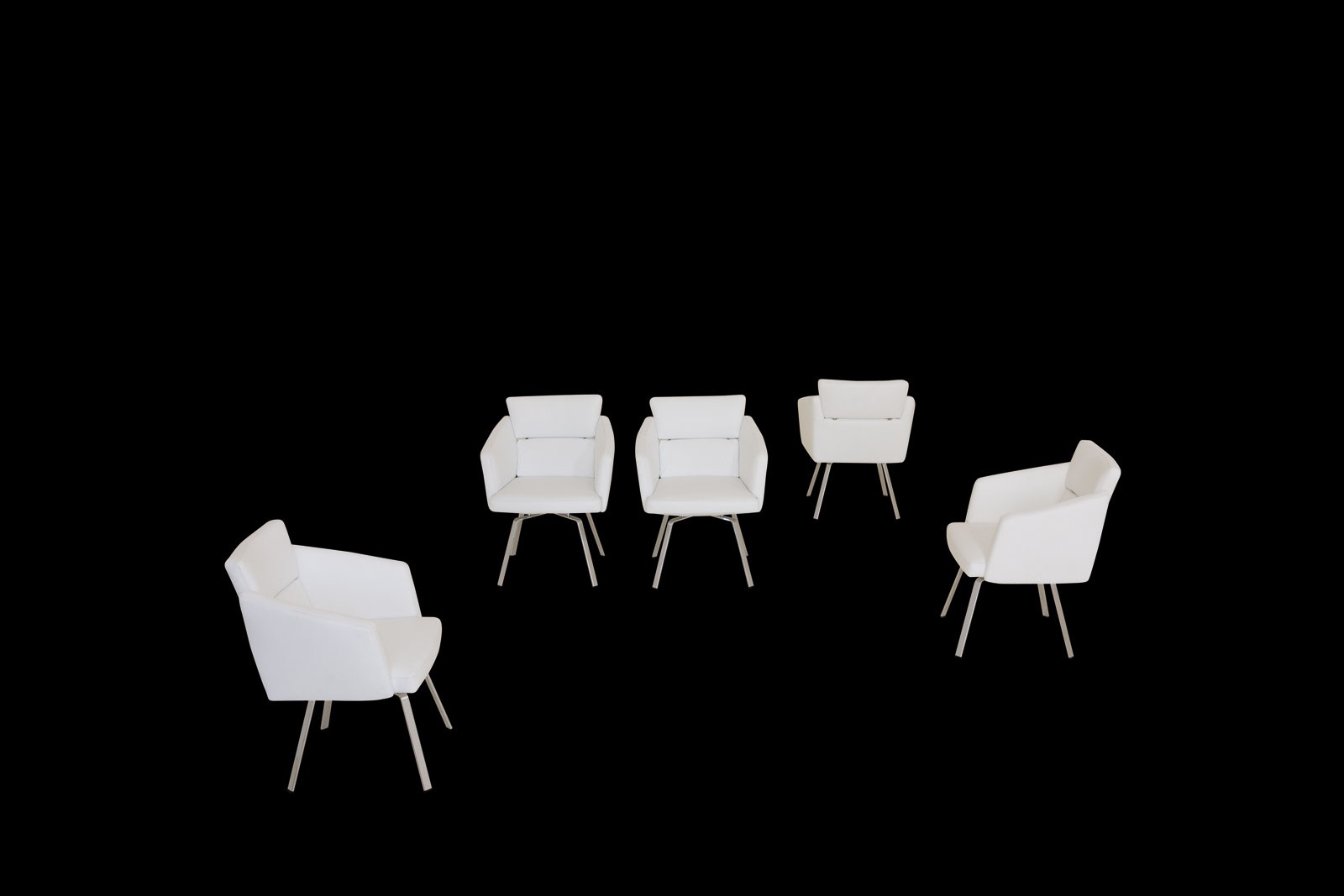 The Adam chair with armrests from the Italian manufacturer Il Loft. Model with legs of chromed steel. The upholstery is leather or textile. Filler-polyurethane foam. Modern design with the colors from the collection of the factory.