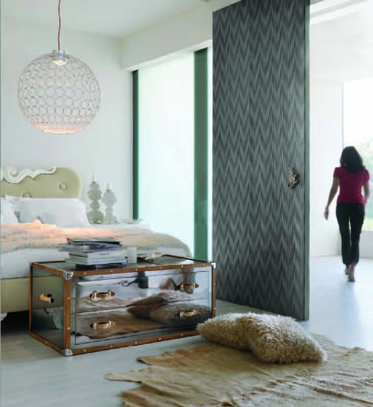 Chest in mirror finish Baule Italian manufacturer Bizzotto. Presents a table shaped like the trunk, the frame is made of wood, the finish most likely made from textile, leather or mirror colors to choose from the range of the manufacturer. Designer addition to your interior.