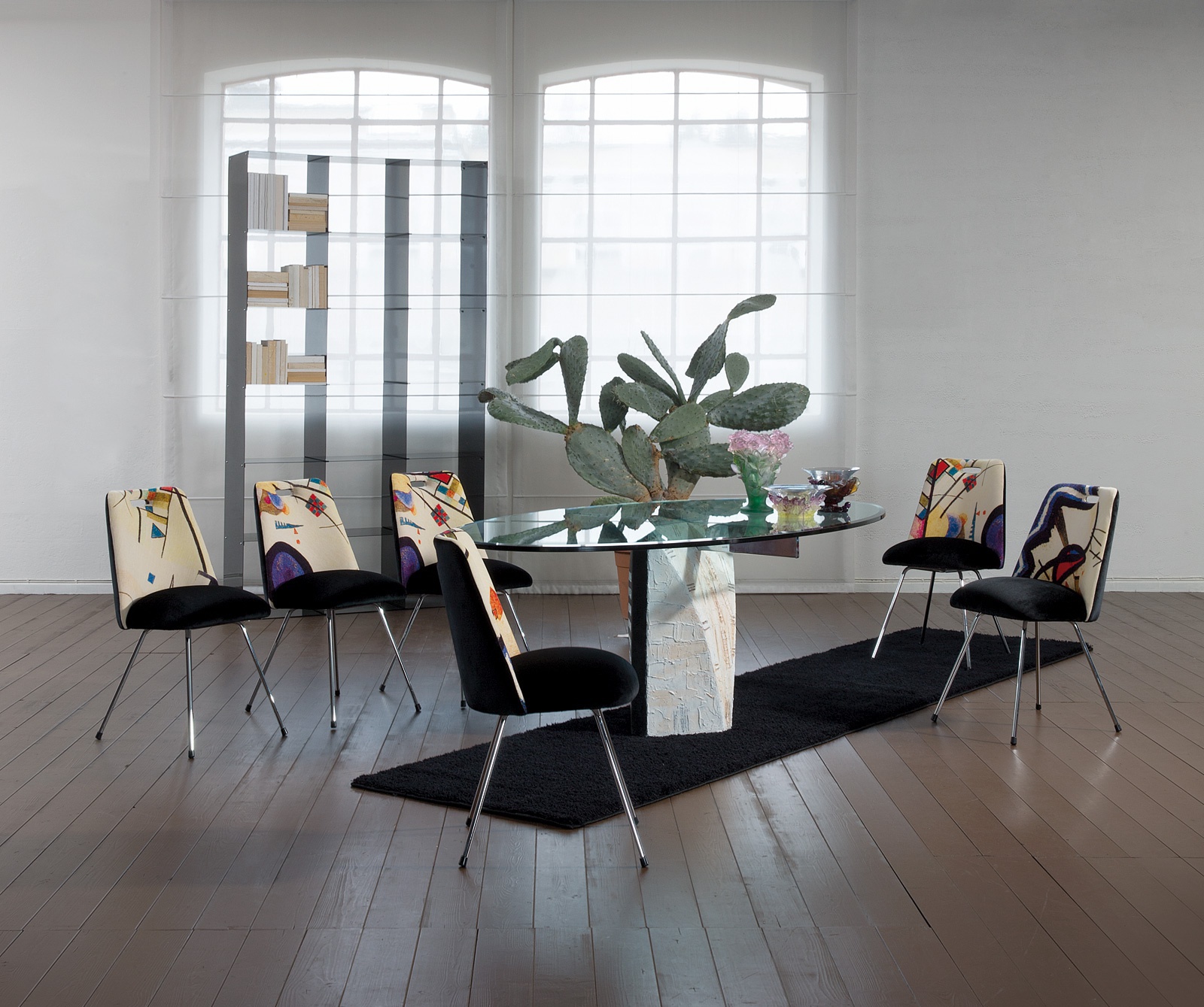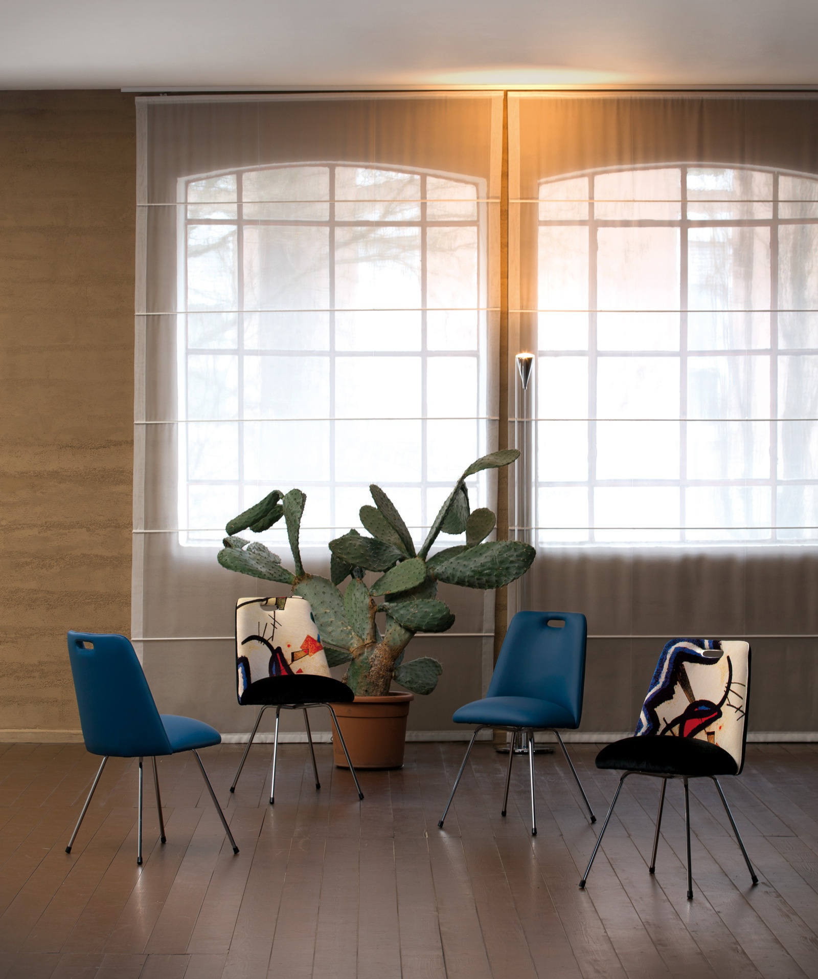 A chair upholstered in Kelly from the Italian manufacturer Il Loft. Model of modern design with a frame made of chromed steel. The upholstery is leather or textile. Filler-polyurethane foam. Colors from the collection of the manufacturer. Is practical and easy.