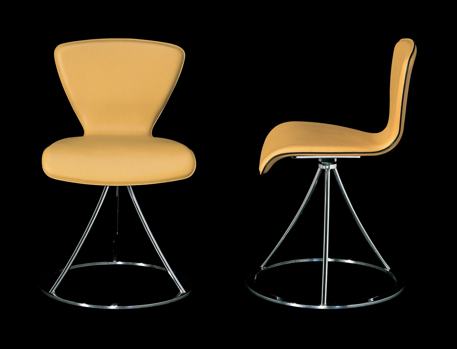 Rotary chair Lara from the Italian manufacturer Il Loft. Frame of chromed steel. The upholstery is leather or textile. Filler-polyurethane foam. The model is designed for modern interiors. Colours in stock.