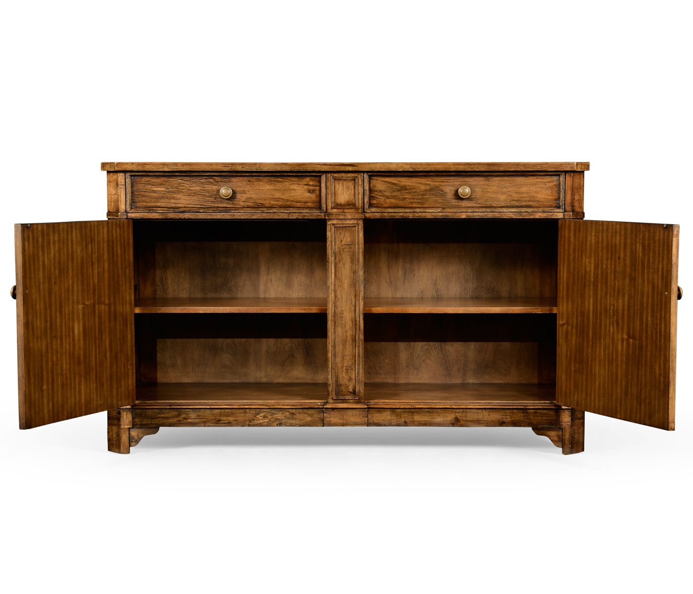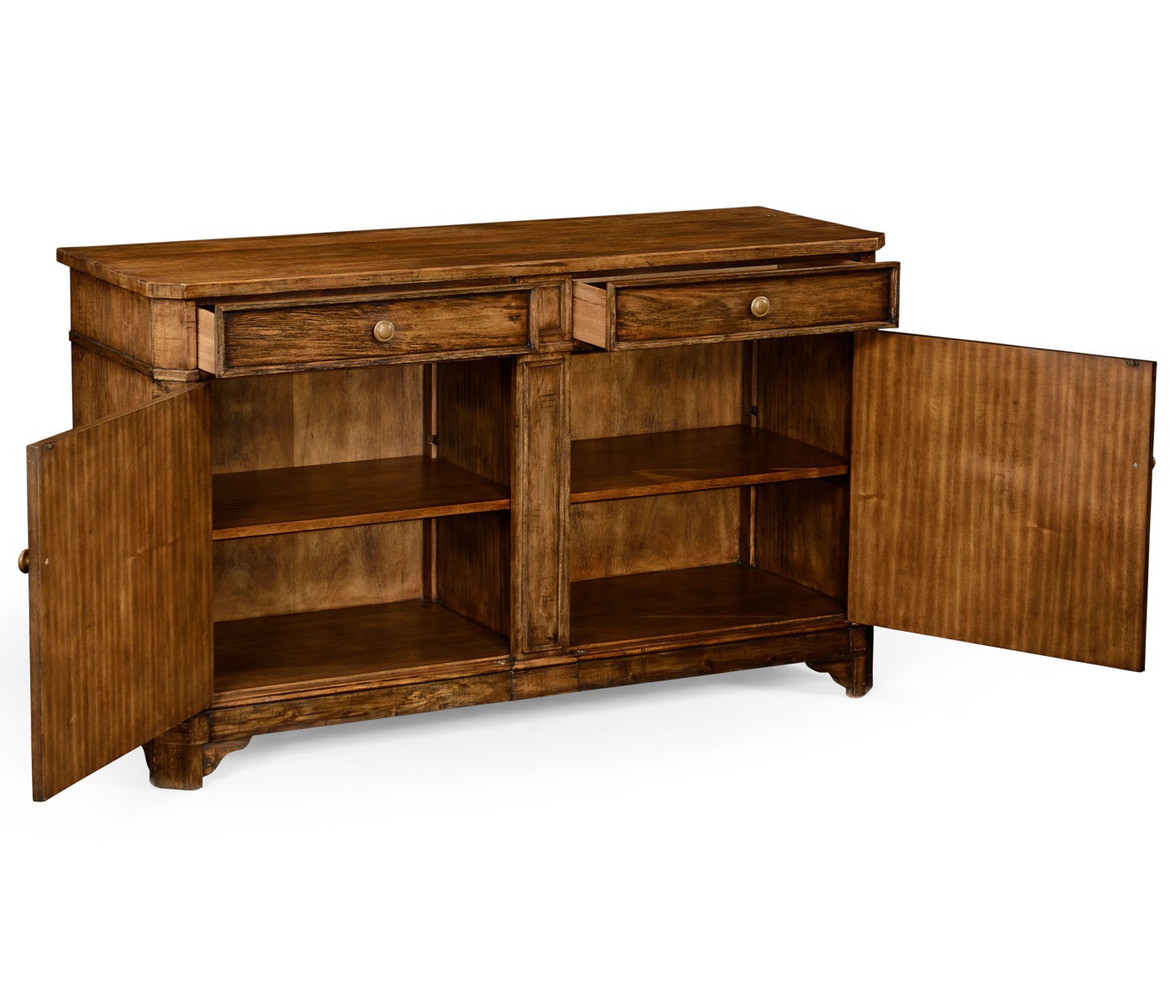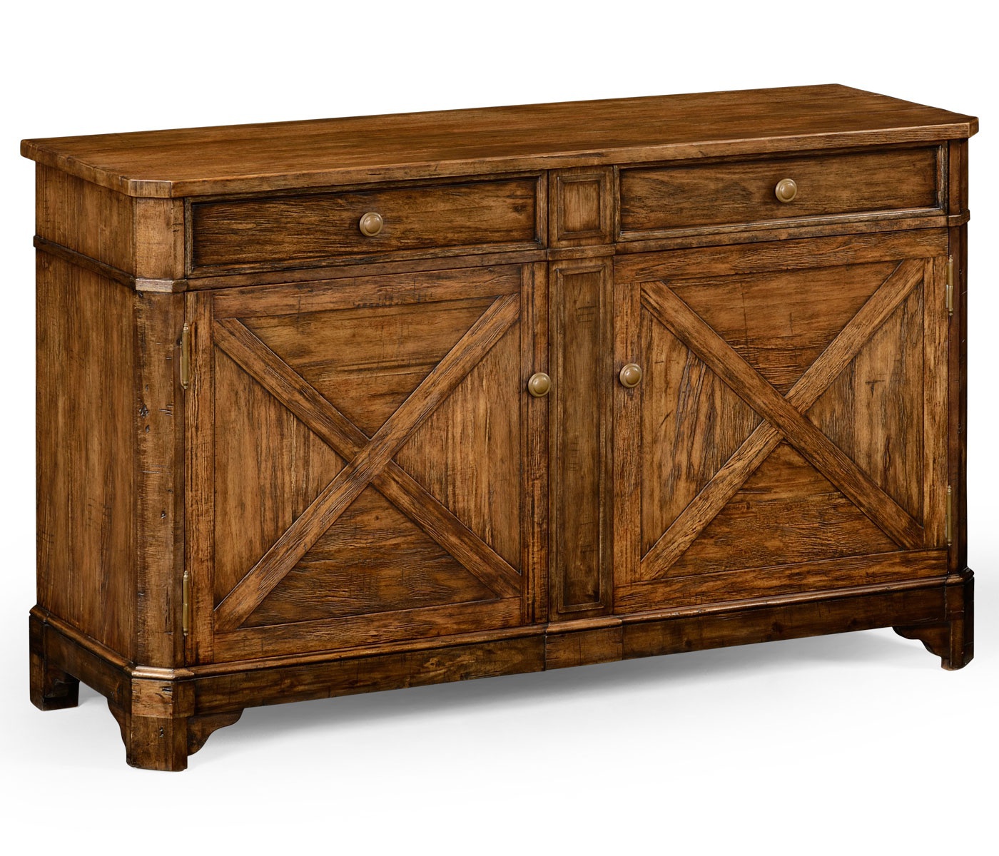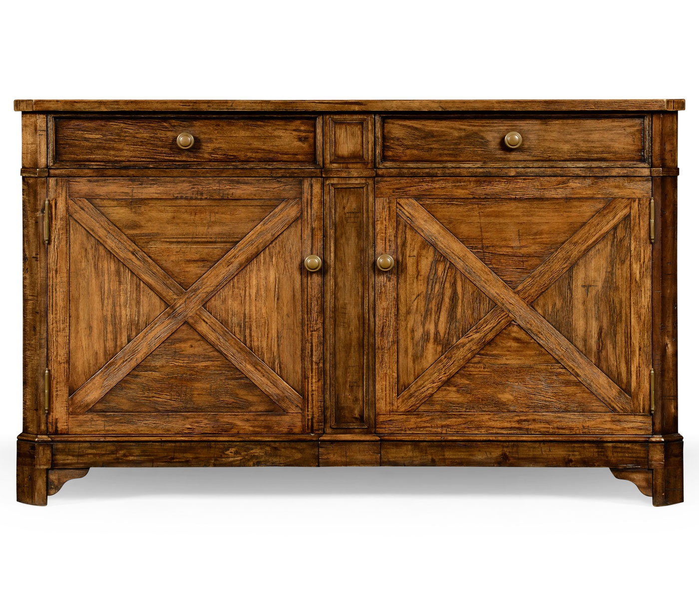 The snack bar of Huntingdon from an American manufacturer Jonathan Charles. Model with two doors and two drawers above. The case is made of wood and artificially aged. Buffet for dining room in country style.