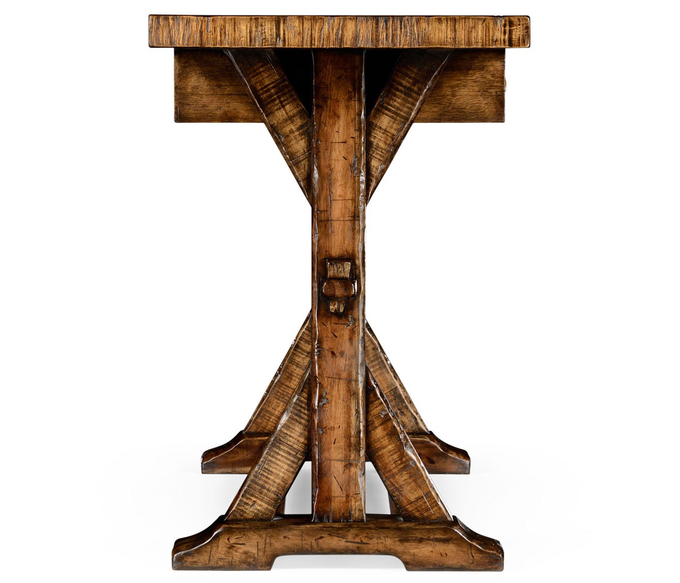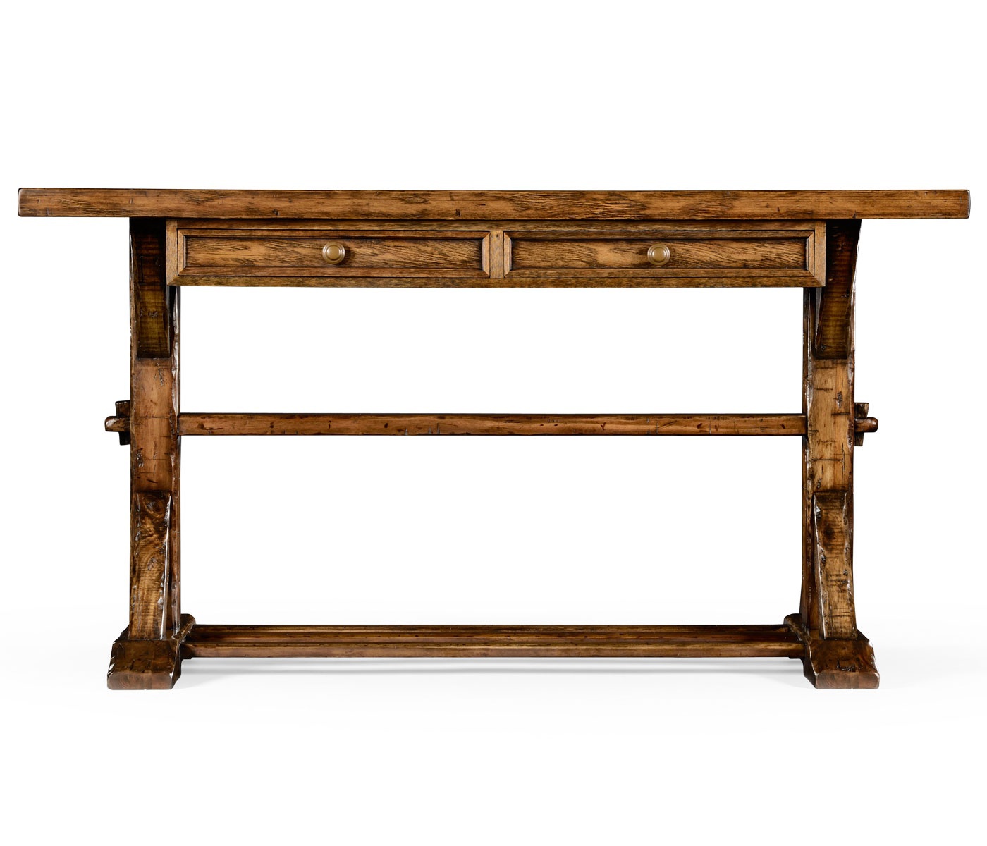 Serving Huntingdon Desk from an American manufacturer Jonathan Charles. The model is equipped with two drawers. The Desk is made of wood and artificially aged. The design is executed in a rustic style.