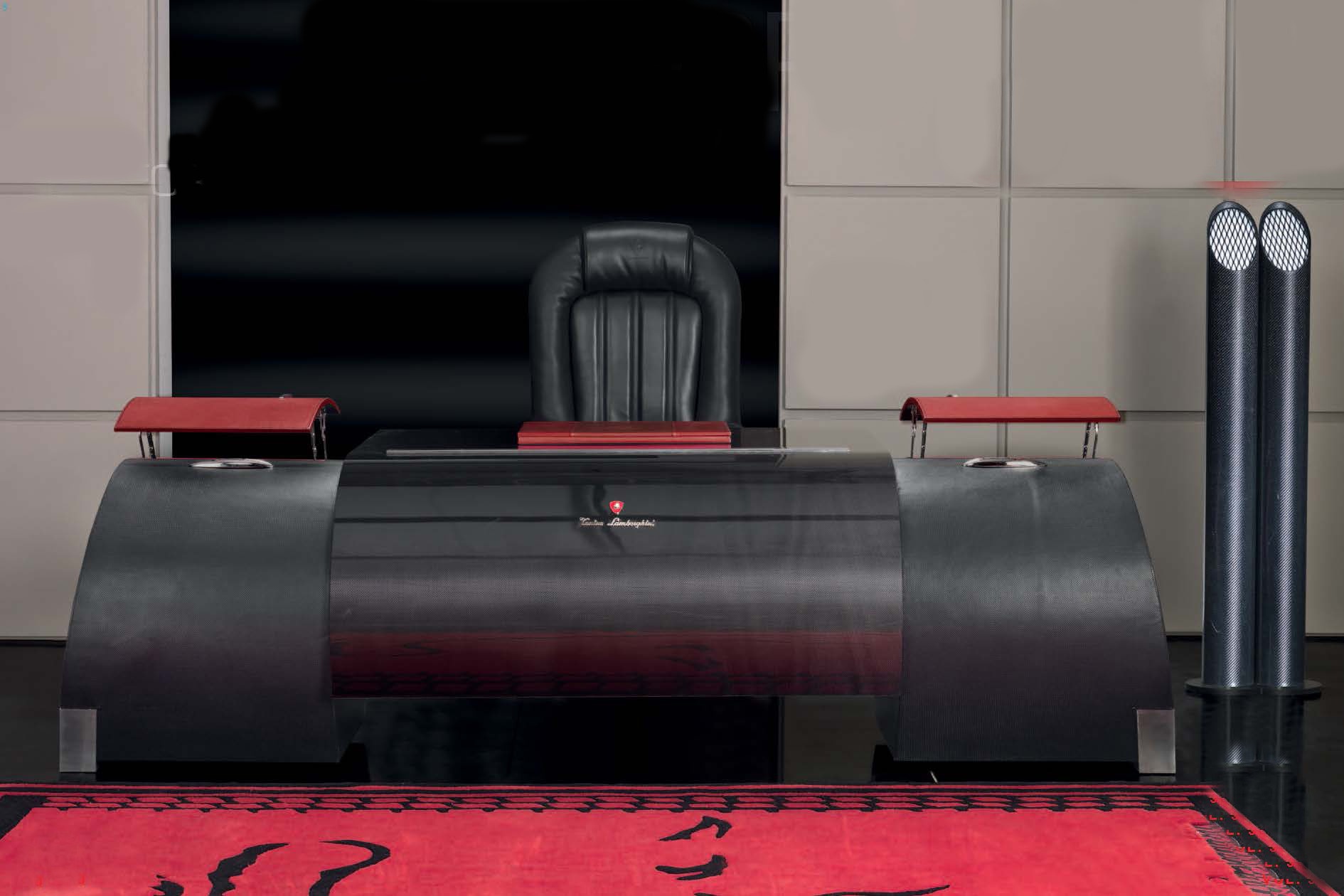 Desk Performance from the Italian manufacturer Formitalia collection from Tonino Lamborghini. Upholstery made of genuine leather, decoration are steel decorative detail. Frame, legs are made of metal and wood. Offers a wide range of colors.