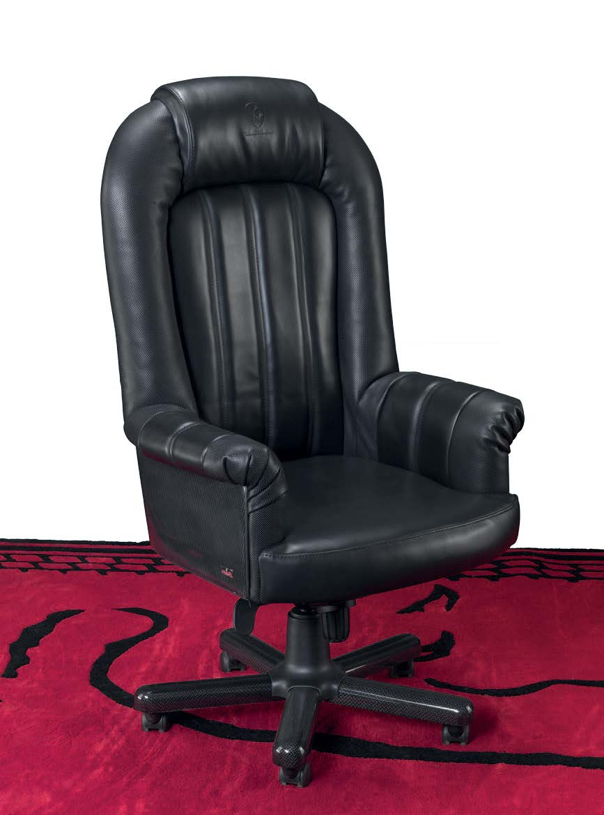 The Performance chair on a rotating basis from the Italian manufacturer Formitalia collection from Tonino Lamborghini. Upholstery made of genuine leather, decoration are steel decorative detail. Back panel and base in carbon fiber finish. Offers a wide range of colors.