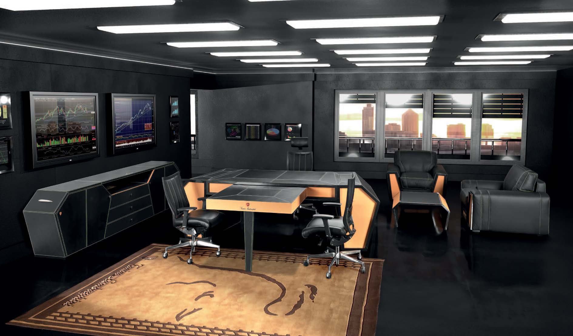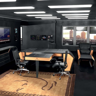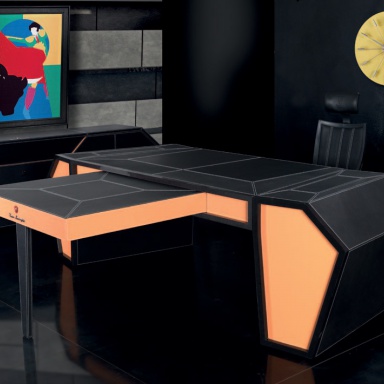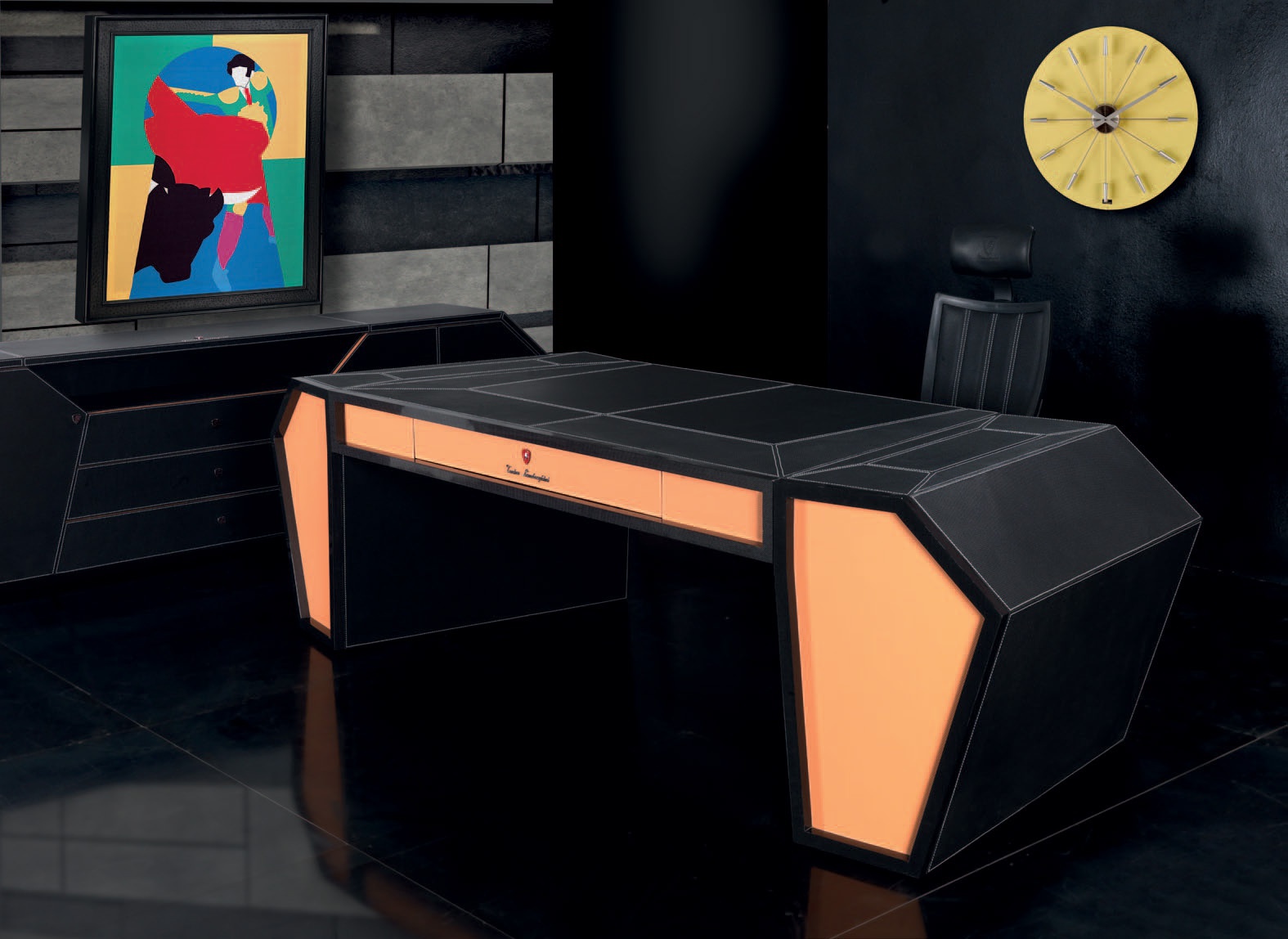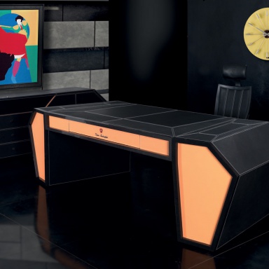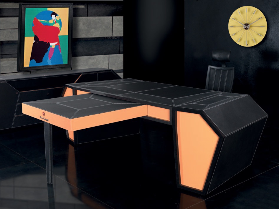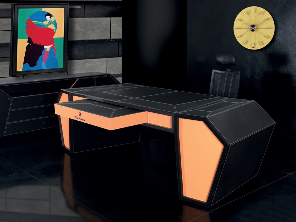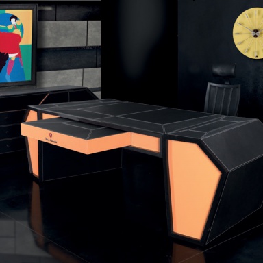 Desk Spider from the Italian manufacturer Formitalia collection from Tonino Lamborghini. Upholstery made of genuine leather, decoration are steel decorative detail. Back panel and base in carbon fiber finish. Offers a wide range of colors.