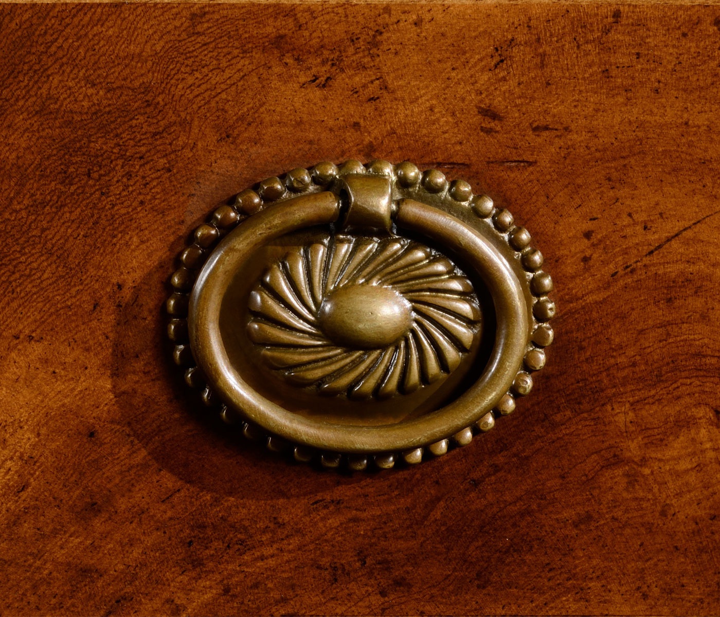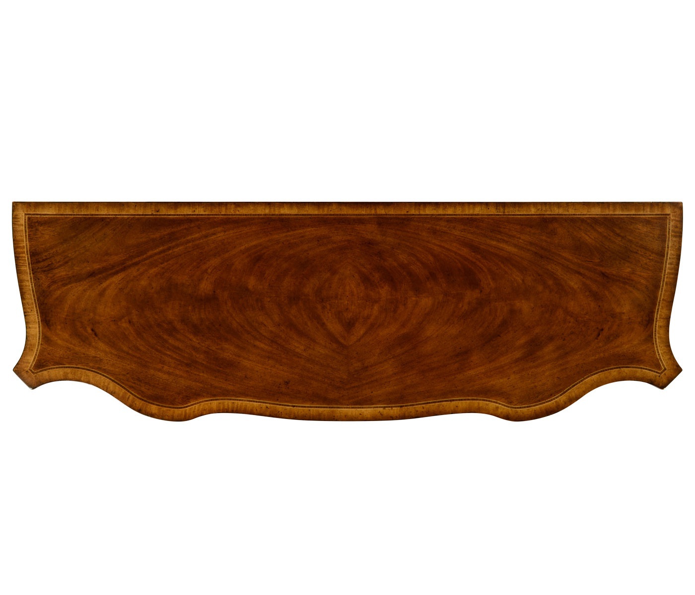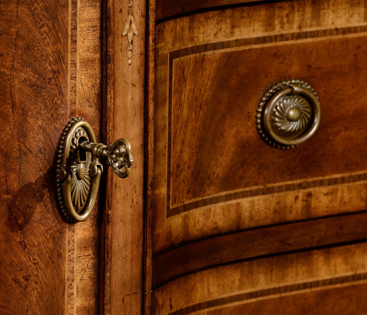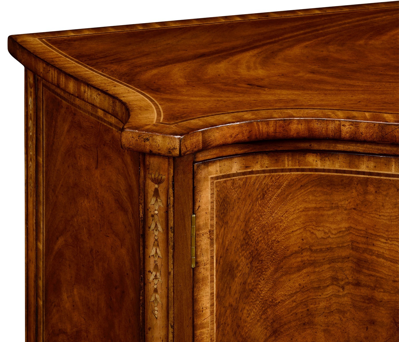 Buffet Windsor from the American manufacturer Jonathan Charles. Model on high legs equipped with two curved doors and three drawers. The body is made of wood and decorated with marquetry. Fittings and ferrules on legs made of metal.