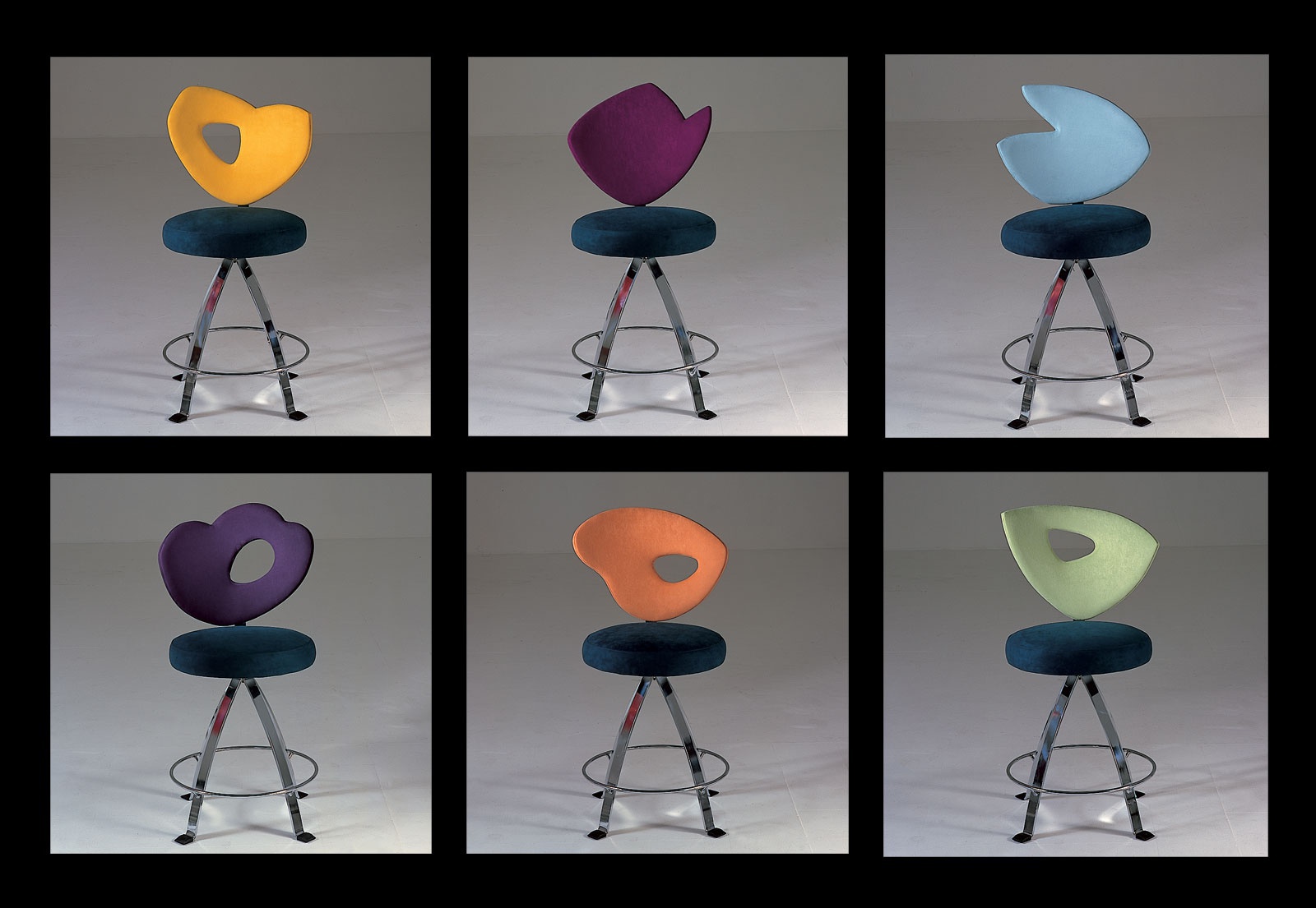 The Samba bar stool from the Italian manufacturer Il Loft. Model with backrest different configurations. The frame and legs are made of chrome steel. The upholstery is leather or textiles from a range of the manufacturer. Filler - polyurethane foam. Colours in stock. The modern design.