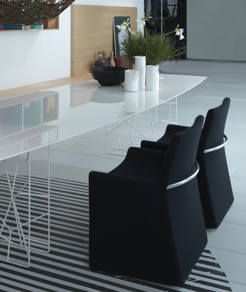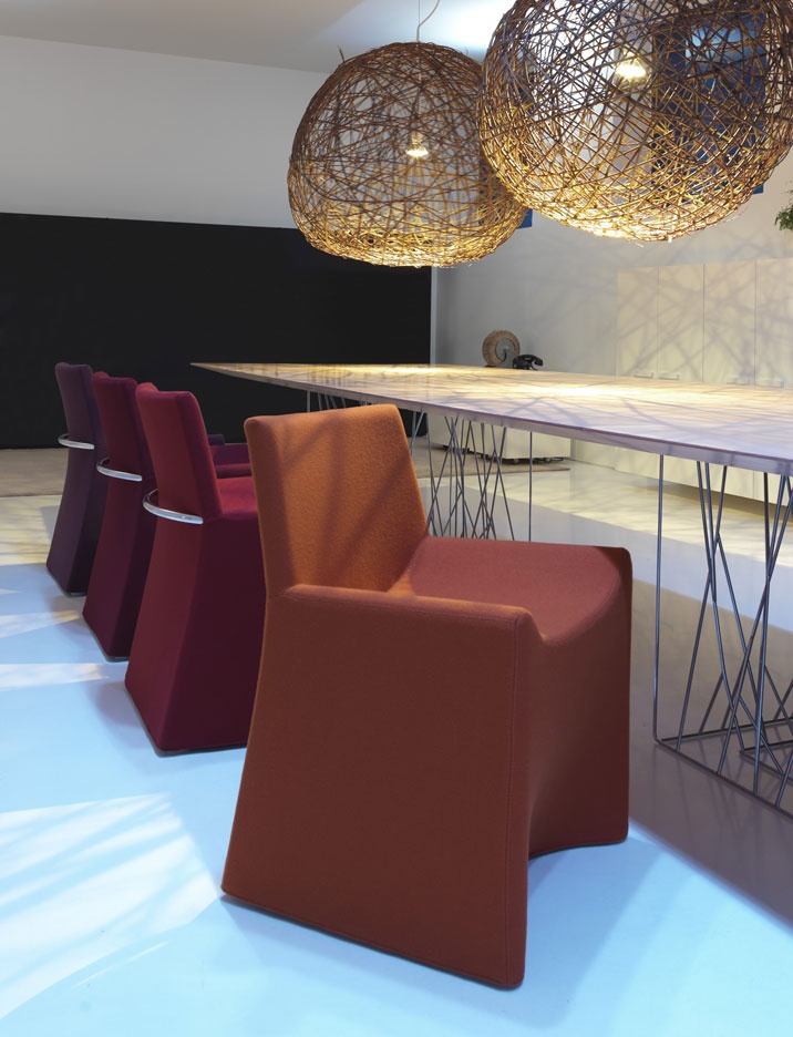 H. the chair Chair from Italian manufacturer Porro. The chair continued series H. Chair from French designer Christophe Pie (Christophe Pillet). The seat, backrest and armrests are a single unit. Slightly concave seat shape looks anatomical. The frame is made of chrome-plated or painted metal. Upholstery completely hides the frame (except for the decorative arc on the back) and made of light wool (color options in the catalog of the factory).