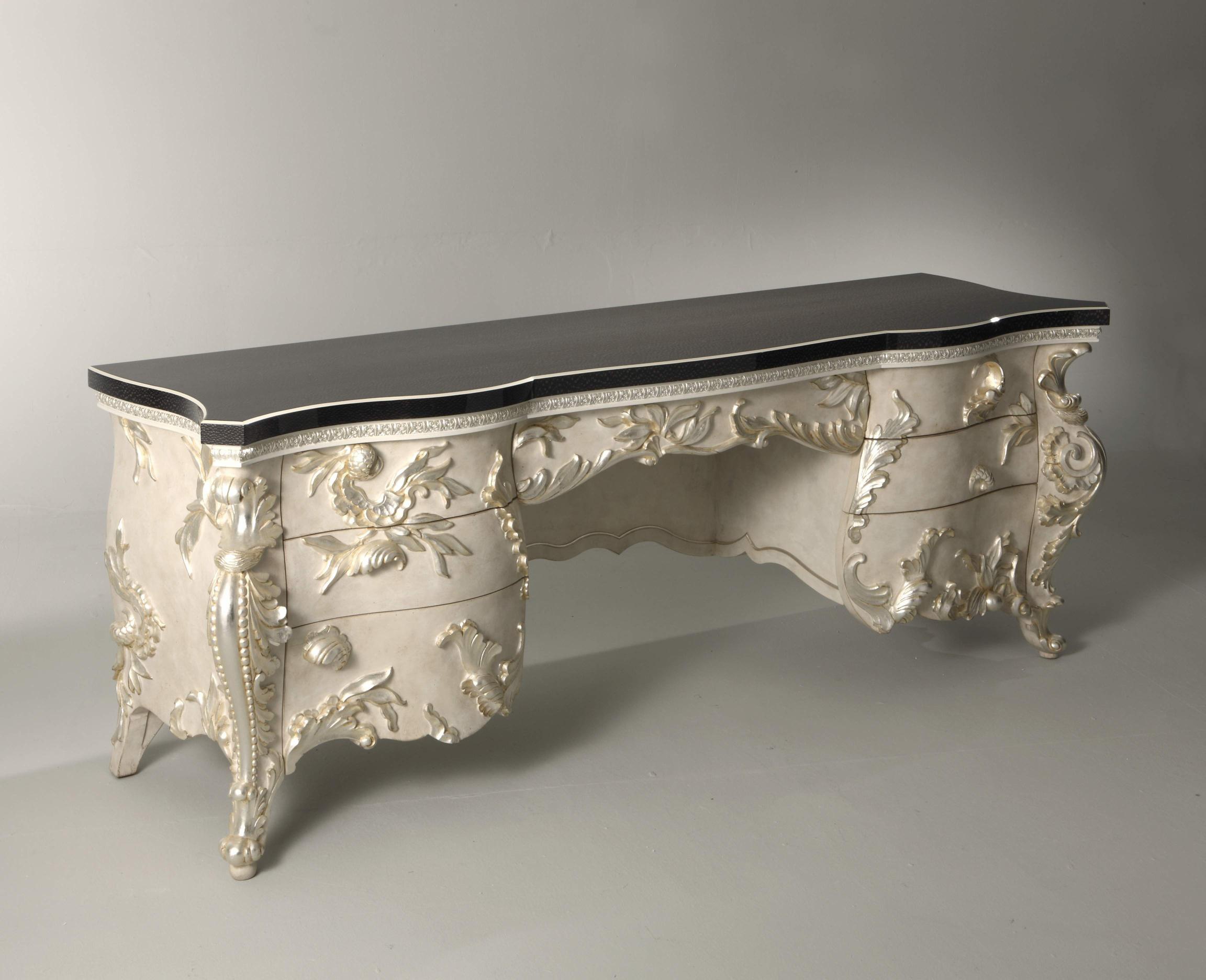 Desk Pompadour by Italian manufacturer Colombo Stile. The model is made from solid wood and decorated with handmade carving. The finishing - varnish. The style is modern. Colours in stock.