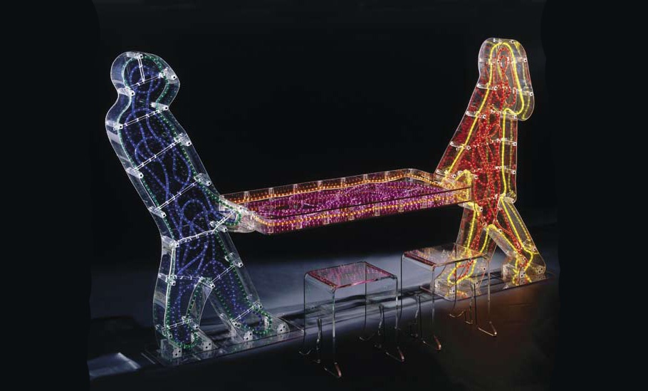 Dining table Litighello with light from the Italian manufacturer Formitalia, the Mirabili collection. Conceptual design creates a unique atmosphere of exclusivity. The model is made from bent acrylic sheet with built-in illumination.