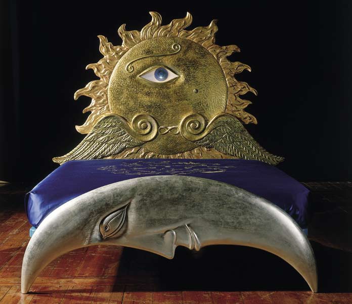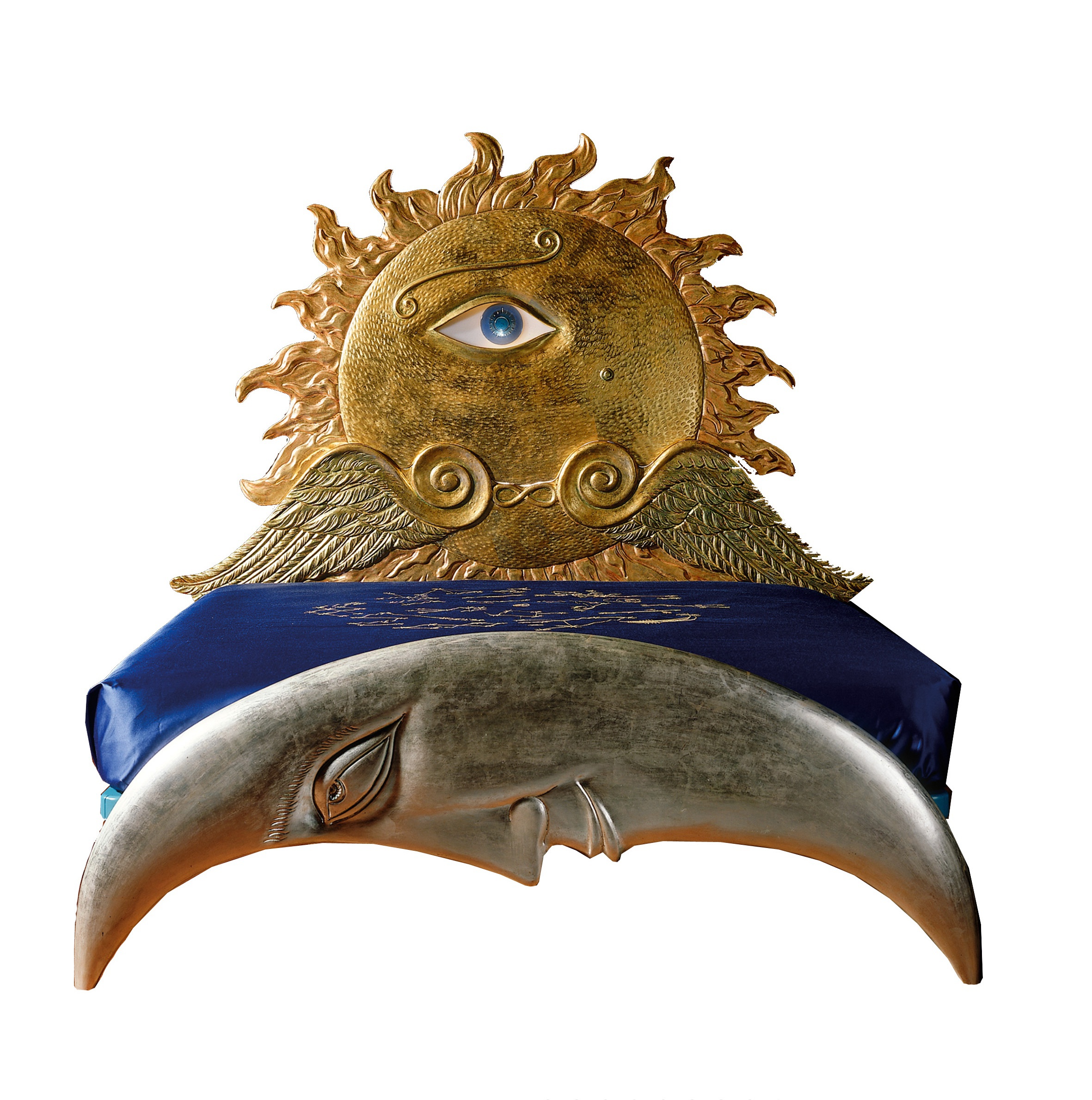 Double bed Helioendimio from the Italian manufacturer Formitalia. Model of the collection Mirabili. Conceptual design creates a unique atmosphere of luxury and exclusivity. Offers a wide range of colors. A framework of wood, with decorative elements in gilded and silvered finish.