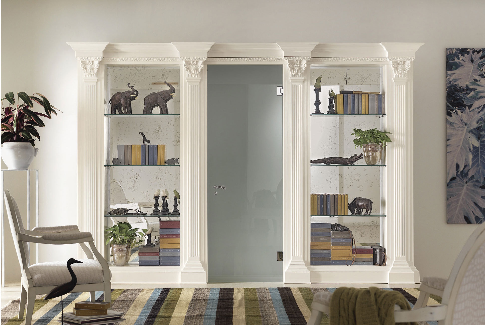 Rack built-Taormina Italian manufacturer Bizzotto. Presents a model of a rack embedded in the wall and designed to store books. The frame is made from wood, shelves - glass. Columns with decorative elements, interior doors made of glass. Colors to choose from manufacturer's catalogue. The classical solution for the modern interior living room.