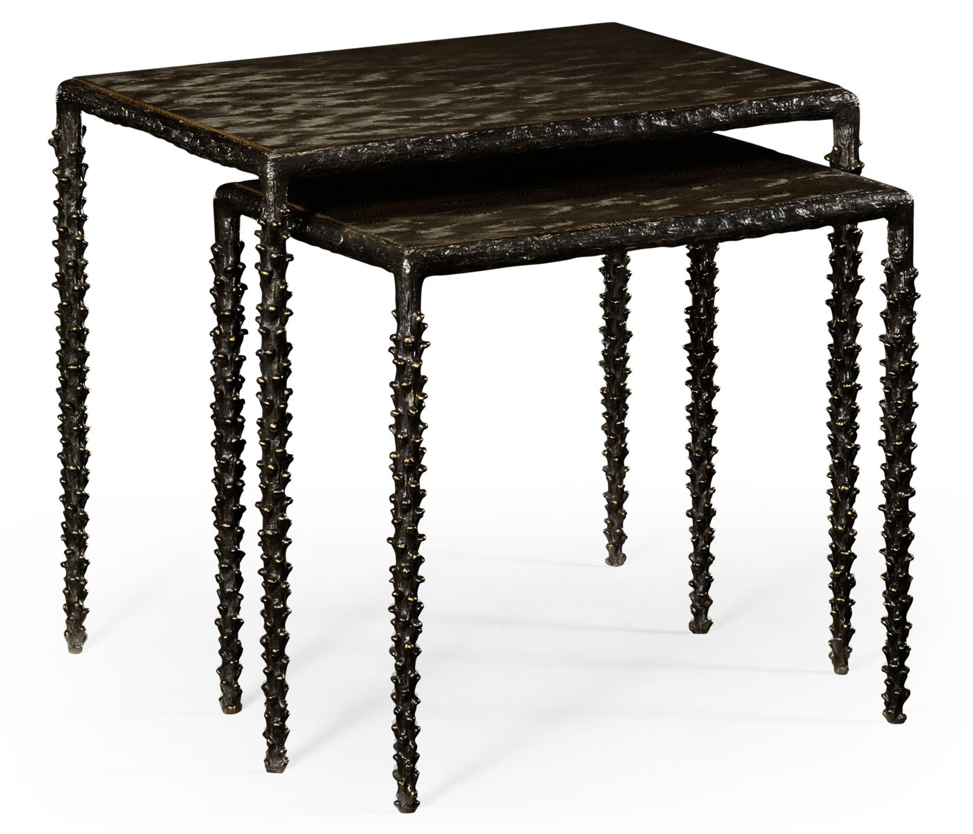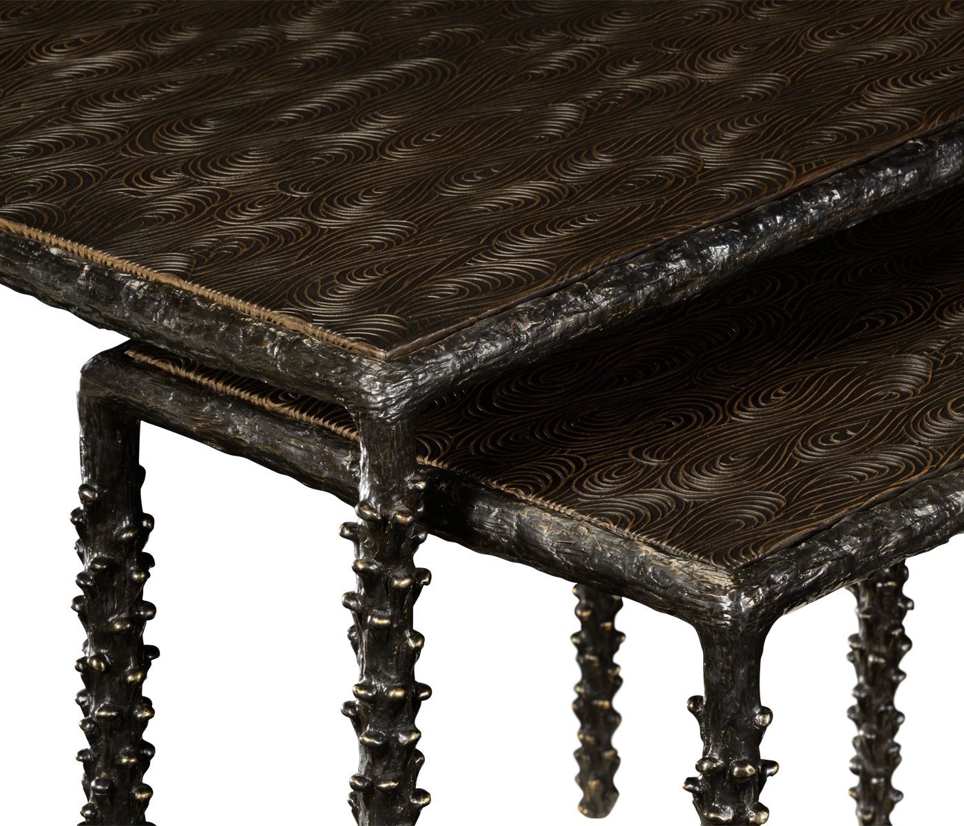 Table Windsor from the American manufacturer Jonathan Charles. Interesting model made of bronze. Top finished in natural leather with stamping. It is proposed a small coffee table and a bigger booth. The design is executed in modern style.