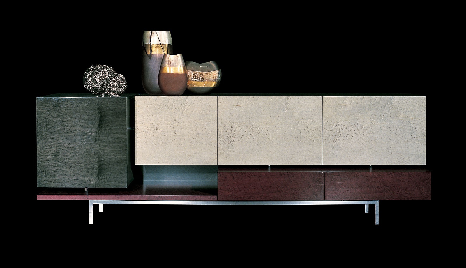 Korum rectangular stand from Italian manufacturer Il Loft. Made of wood and MDF with legs made of chrome plated steel. The model with four hinged doors. Self-opening push - up. Colours in stock. The modern design.