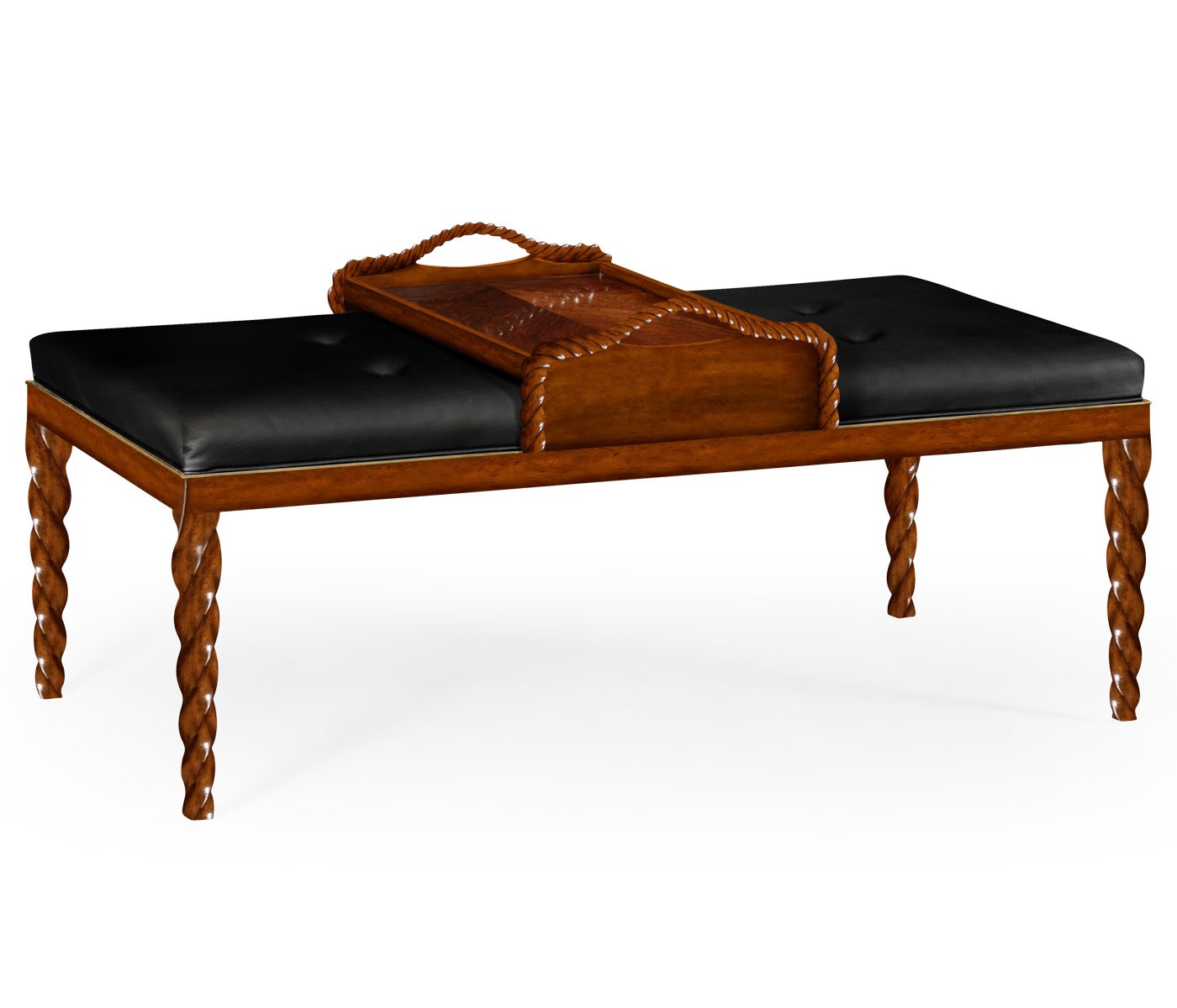 Poof table Twist from the American manufacturer Jonathan Charles. The model with the frame and top of the wood trim under the nut. Legs - carved. Upholstery made of leather or a textile fabric.