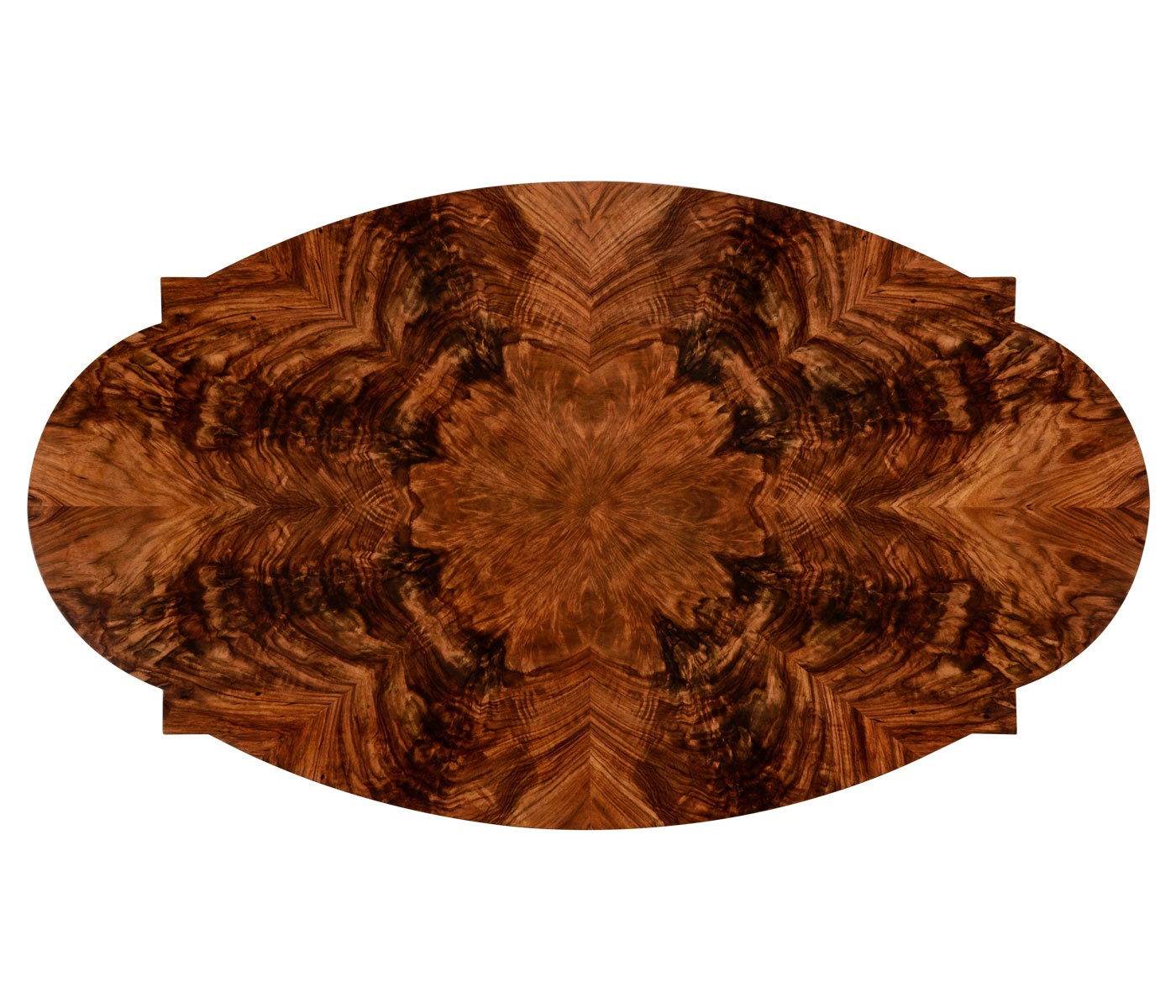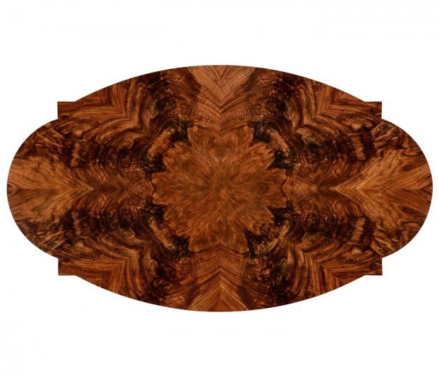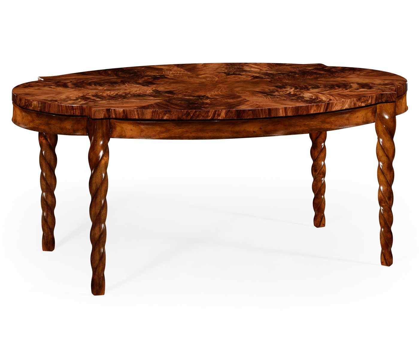 Twist table from the American manufacturer Jonathan Charles. Oval model on the original twisted legs. The counter is made of wood and covered with veneer. The frame and carved legs are available in walnut finish or lacquered black. The design is executed in classical style.