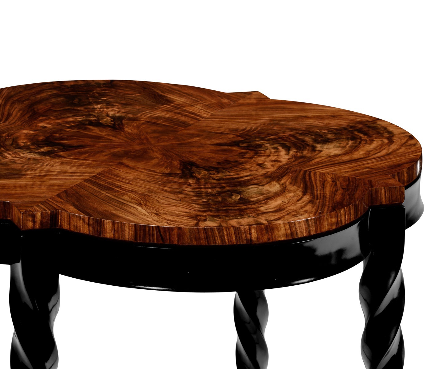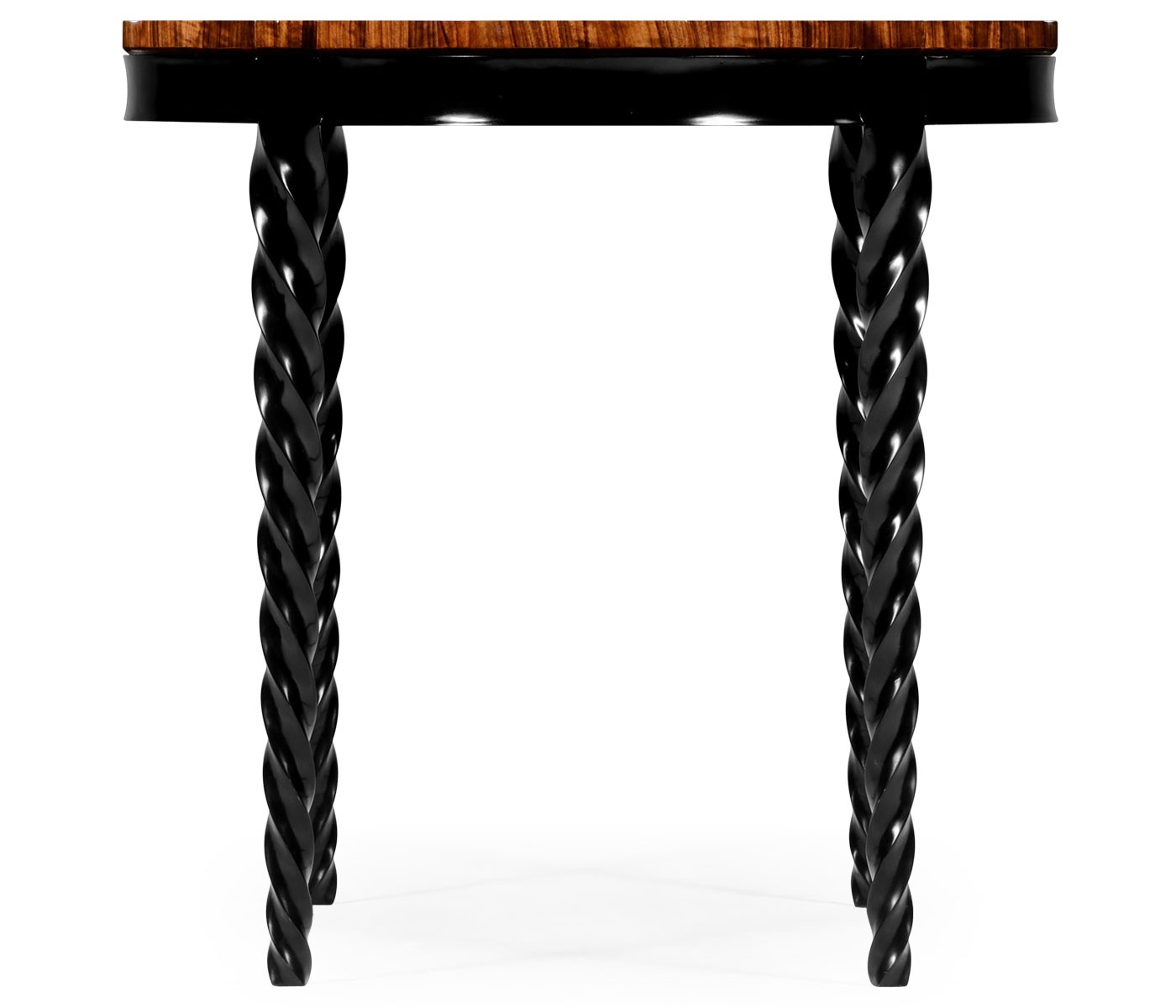 Twist table from the American manufacturer Jonathan Charles. The model on the original twisted legs. The counter is made of wood and covered with veneer. The frame and legs are carved from wood finish available in walnut or lacquered black. The design is executed in classical style.