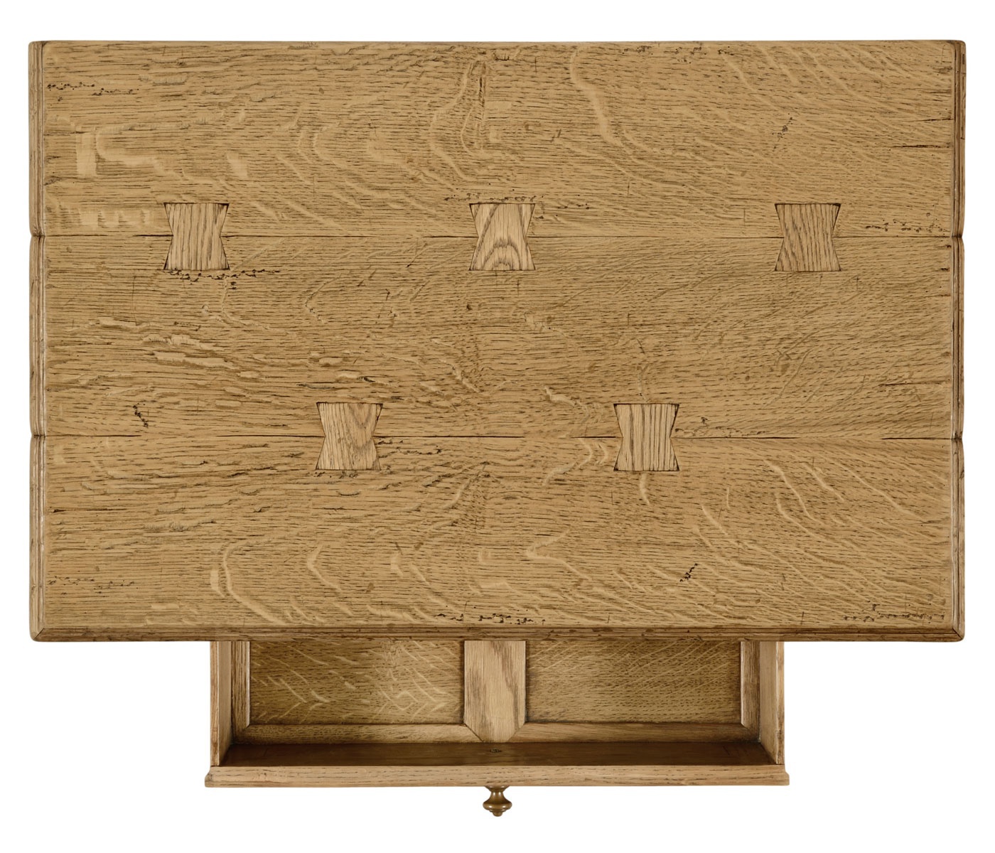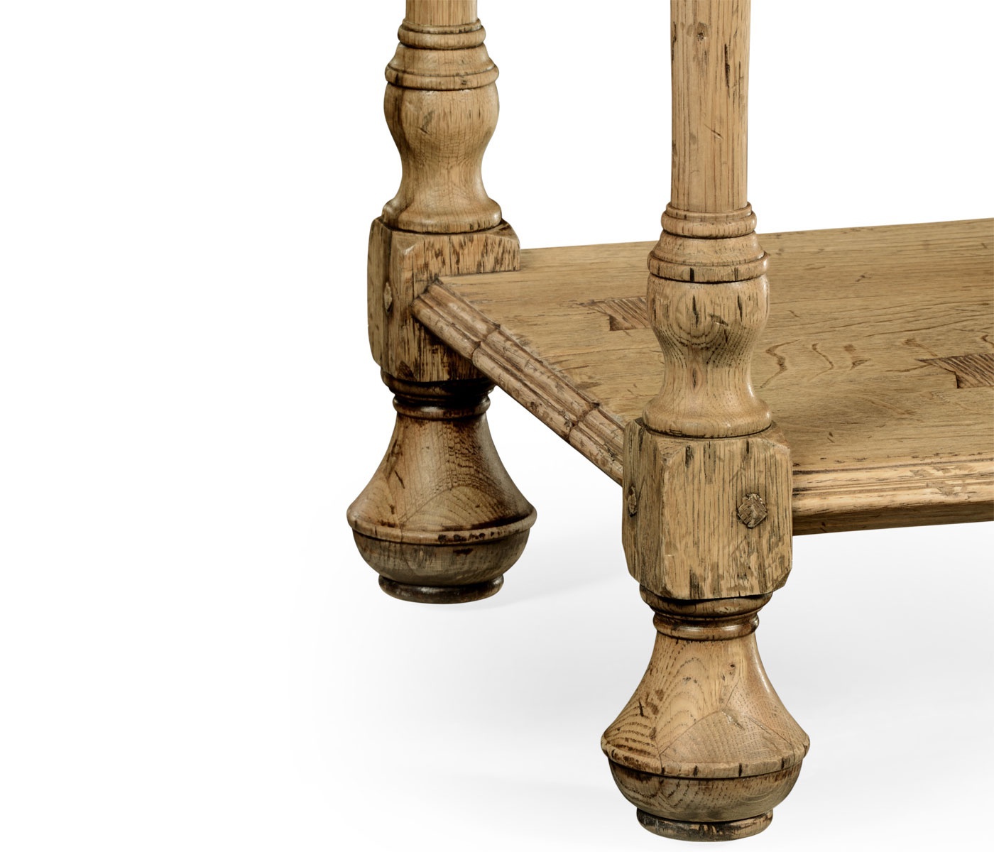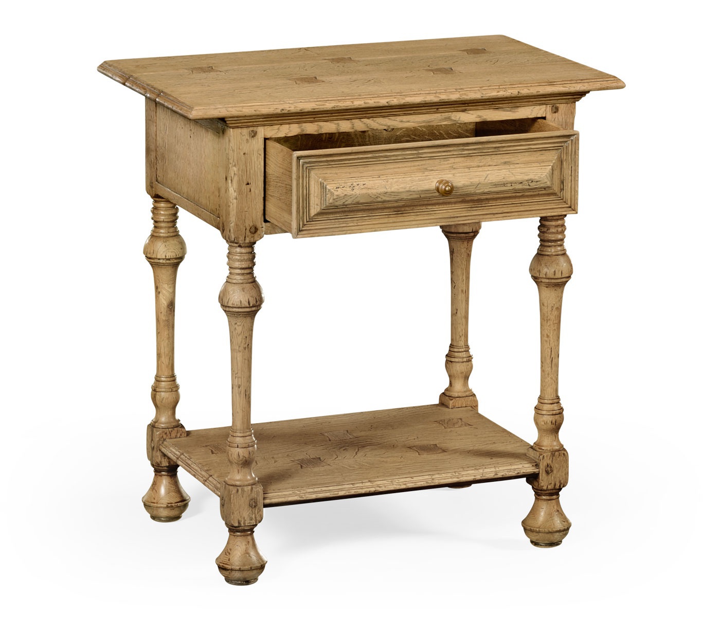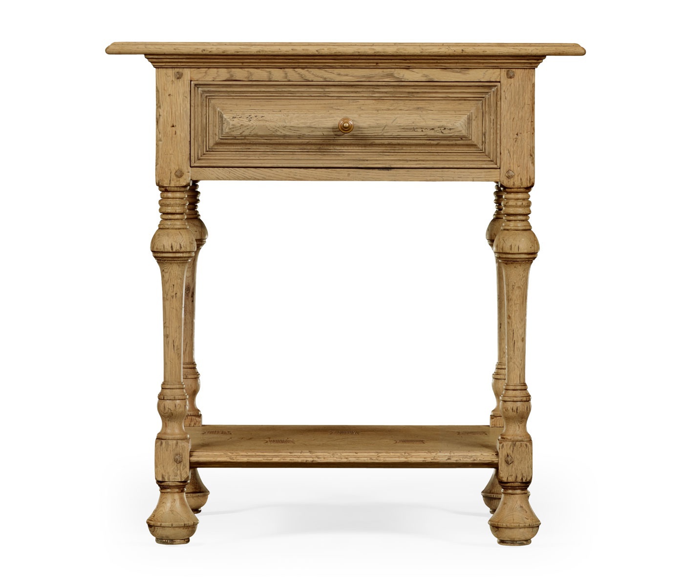 Table Natural Oak from the American manufacturer Jonathan Charles. The model is made from wood with a weathered finish in light oak. Legs are figured, carved. Pridivanny table fitted with a drawer and shelf.