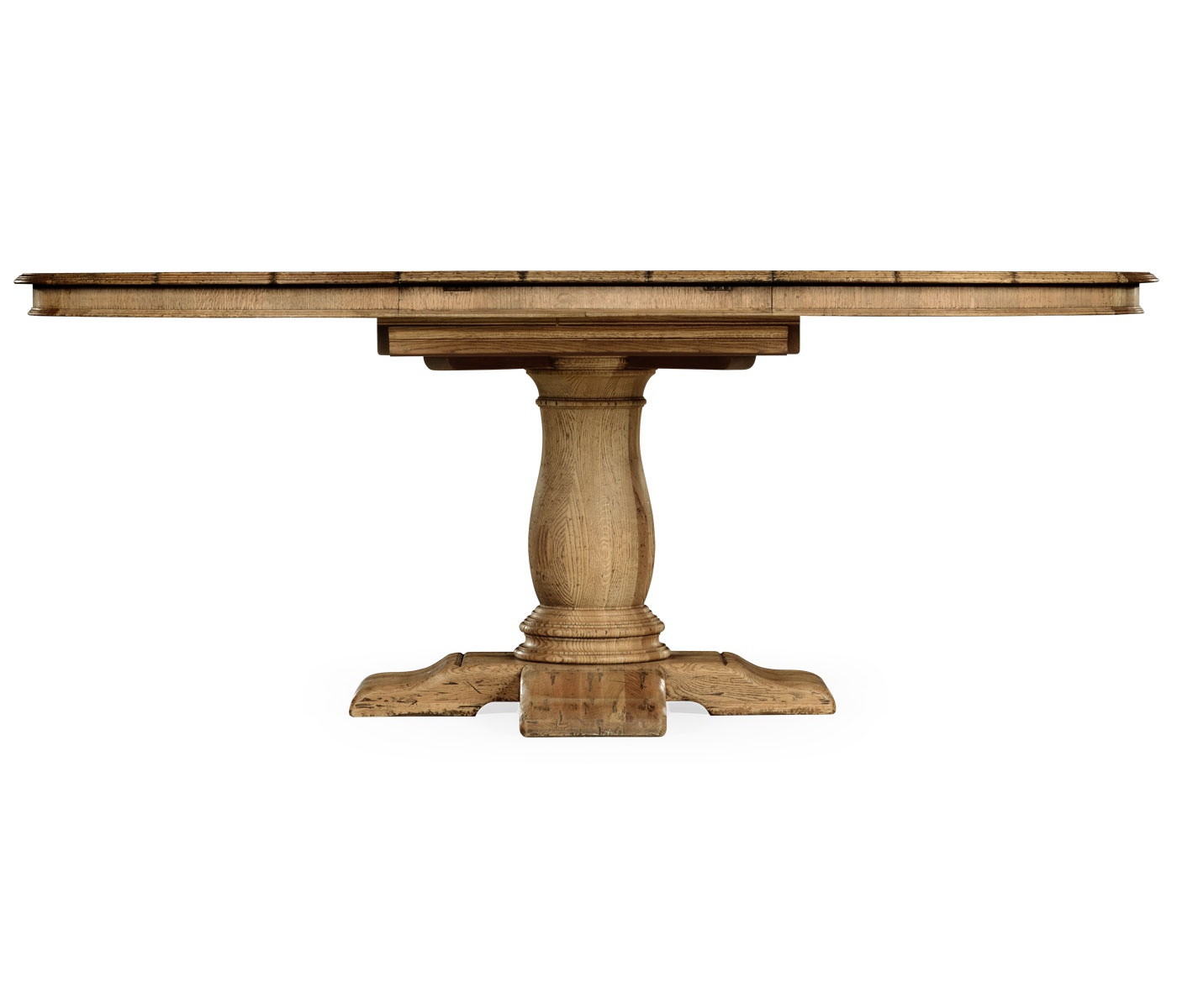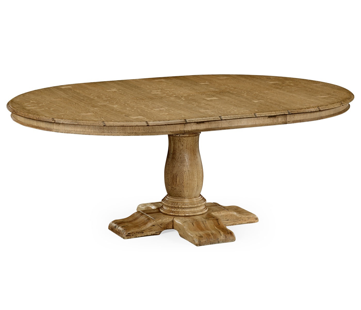 Dining table Natural Oak from the American manufacturer Jonathan Charles. The model is made of wood finished in the light oak. Sliding top supported on a massive base. The table in the French country style is based on 9 persons.