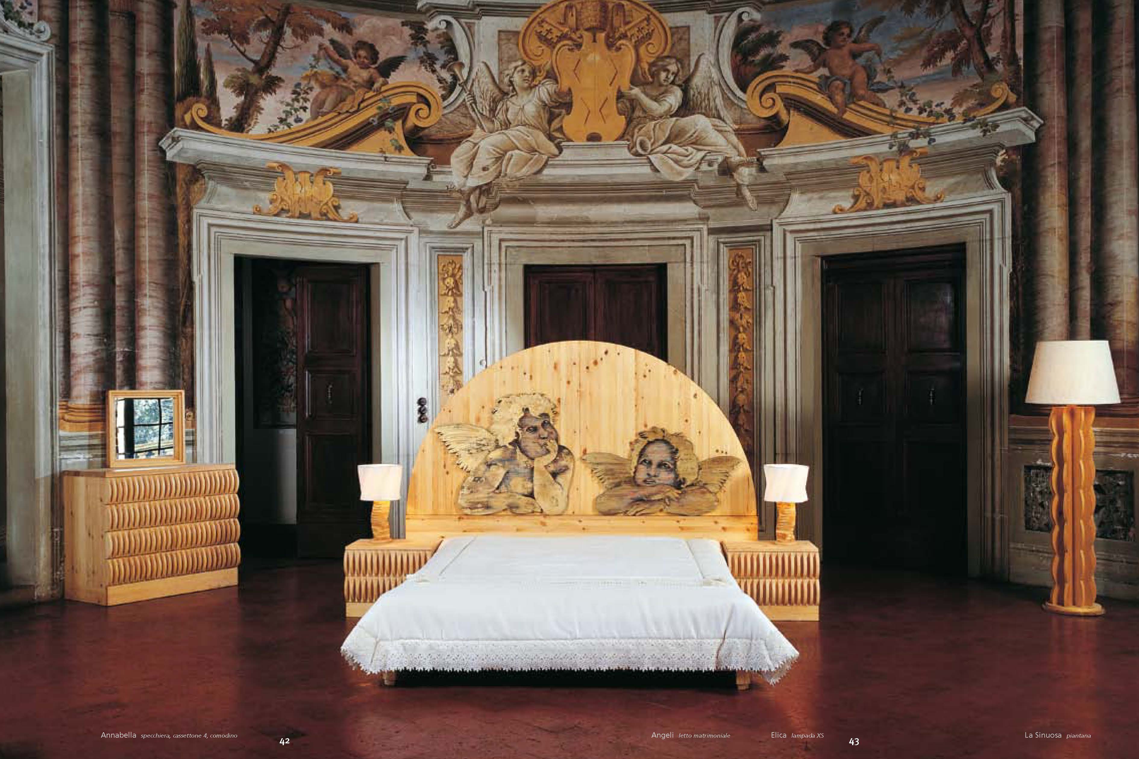 Double bed Angeli from the Italian manufacturer Formitalia, the Mirabili collection. Bed in a designer style, made of natural wood. Offers a wide range of colors.