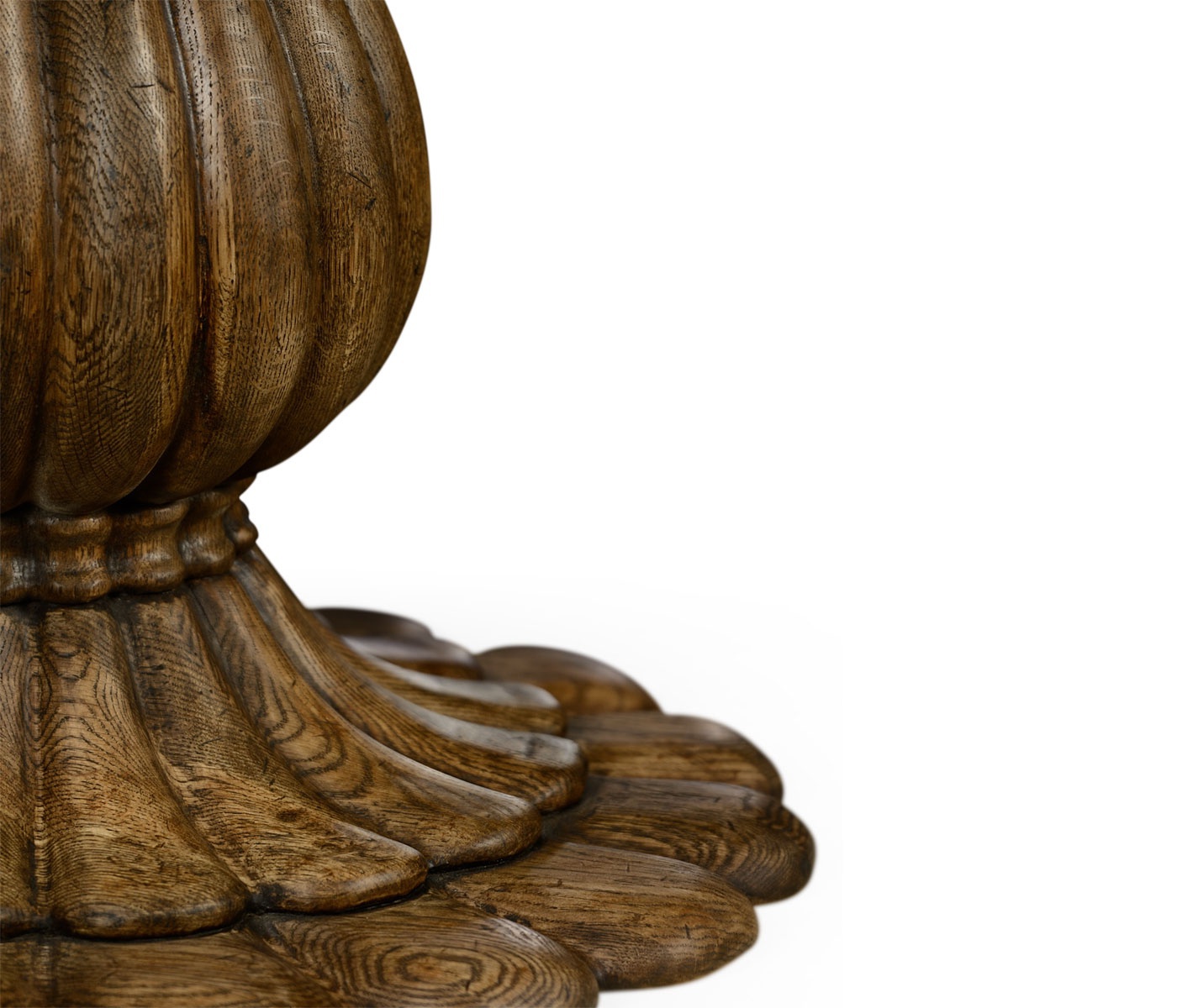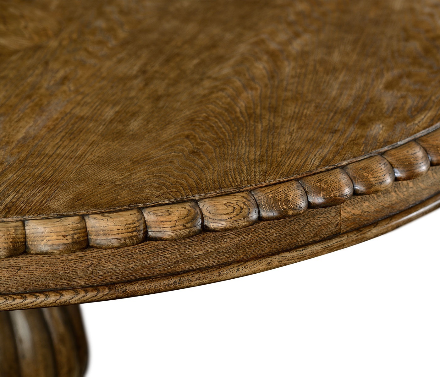 Dining table Natural Oak from the American manufacturer Jonathan Charles. The model is made of oak and carved with handmade. Round top supported on a massive base. Dining table for simple or festive feasts.