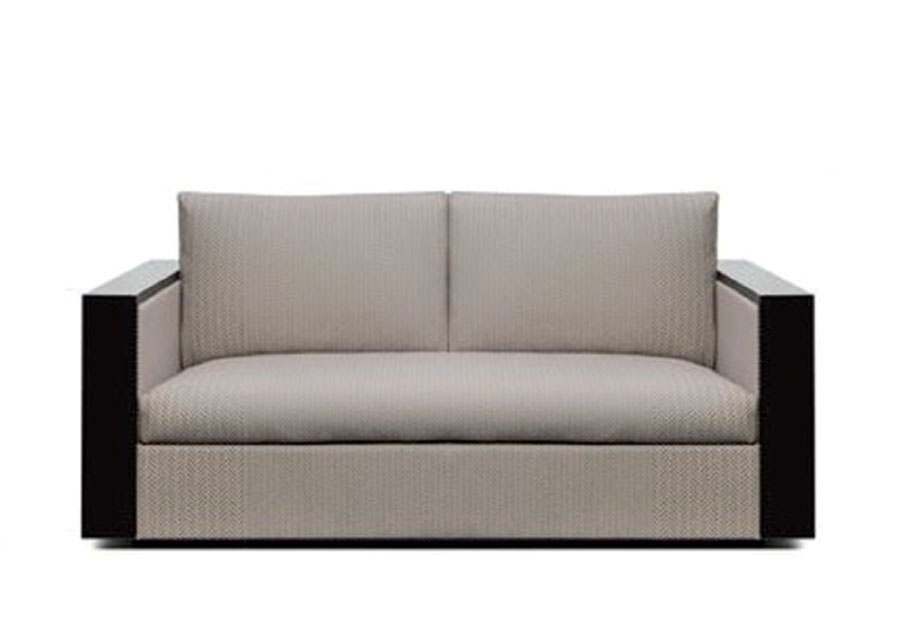 Raphael double sofa, two seats Italian manufacturer Armani Casa. Presents a model of double sofa wooden frame, armrests rectangular wooden in black color or to choose from a catalog company. Upholstery in grey textile, available in the skin. A modern solution for living room.
