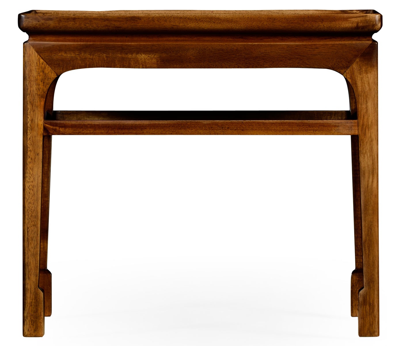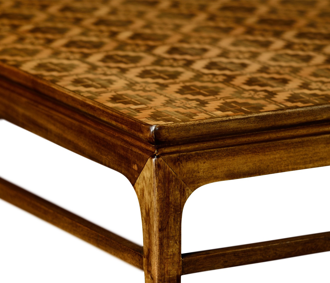 Coffee table Leyburn from the American manufacturer Jonathan Charles. The model is a rectangular shape made of wood. The table top is decorated with marquetry.