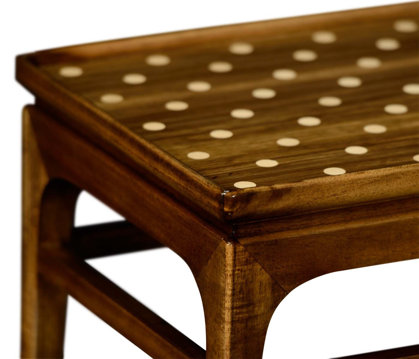 Coffee table Leyburn from the American manufacturer Jonathan Charles. Frame and worktop made of wood. The rectangular top decorated with marquetry.