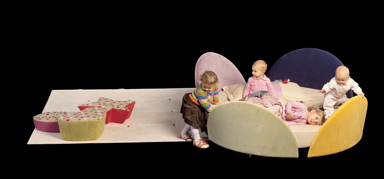 A round bed upholstered Felix baby letto from the Italian manufacturer Il Loft. The frame is made from wood with metal legs. Upholstery textiles. Model with closed side-to-side, allowing you to use as a playpen. Colors to choose from the collection of the factory. Modern, comfortable and practical model will decorate a child's room.