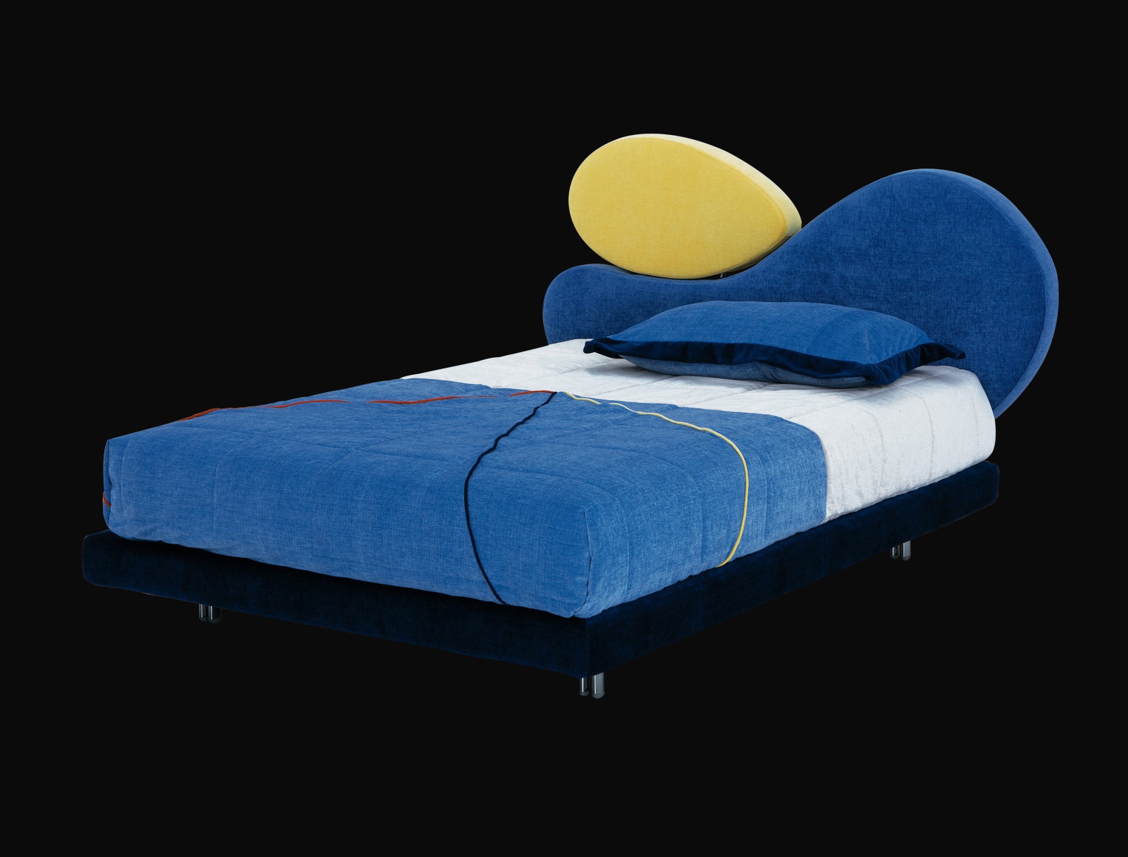 Bed with upholstered headboard Frank from the Italian manufacturer Il Loft. The model for the nursery with frame from wood. The legs are made of metal. Upholstery of natural fabrics. Available in different colors and sizes. The modern design.