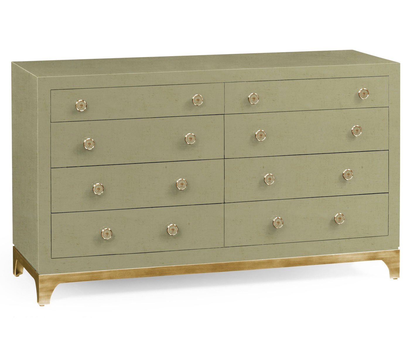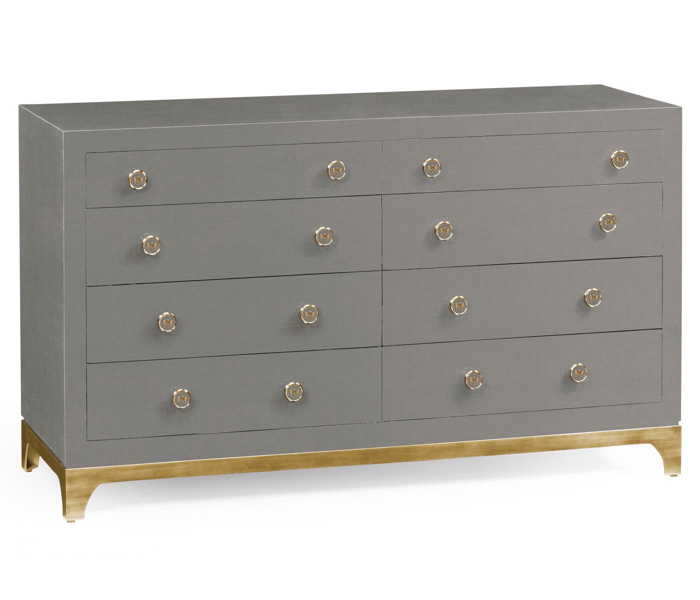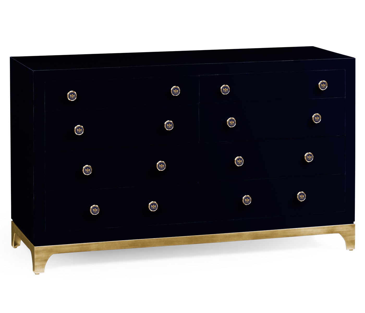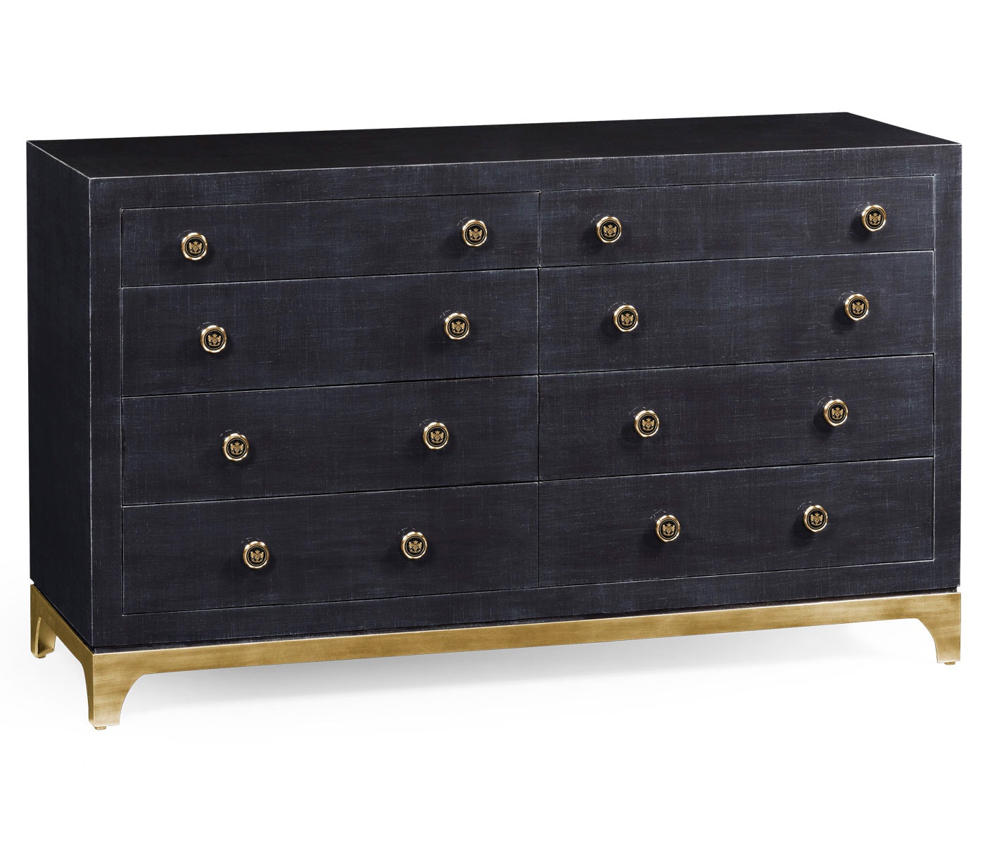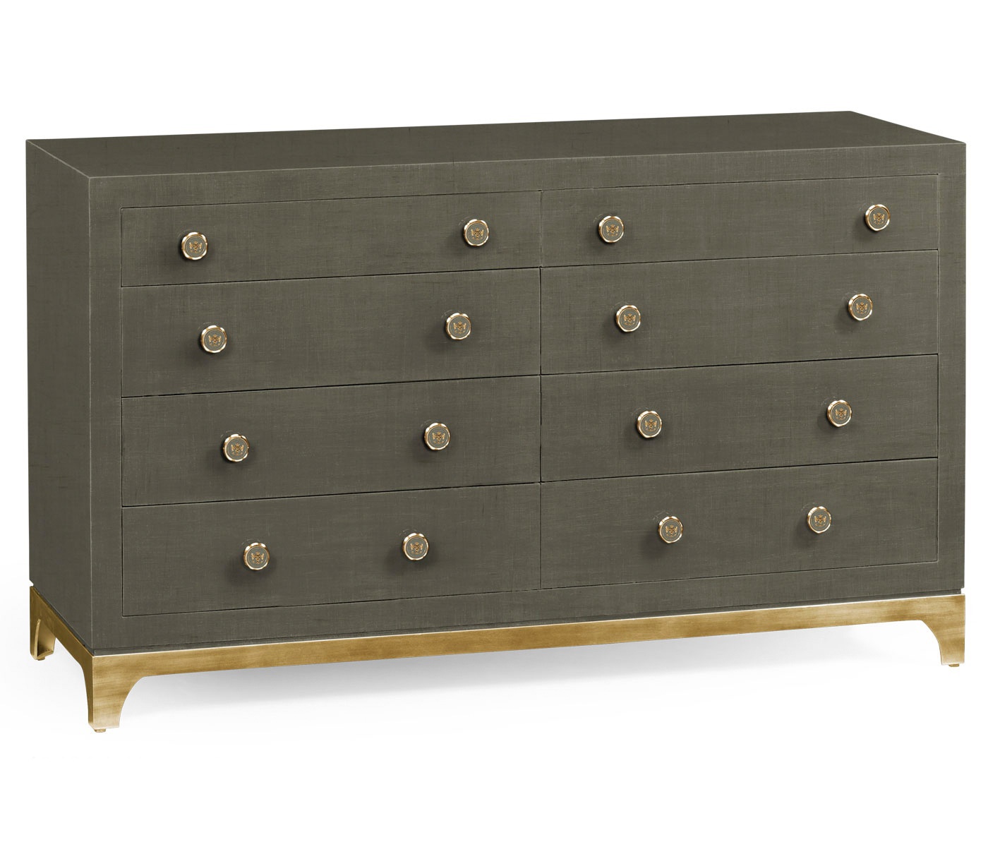 The Alexander Julian chest of drawers from the American manufacturer Jonathan Charles. Gorgeous model with eight drawers. The manufacturer offers finish on a choice of ten colors. Metal bearing Golden color. The handles on the drawers resemble the buttons on a double-breasted jacket.