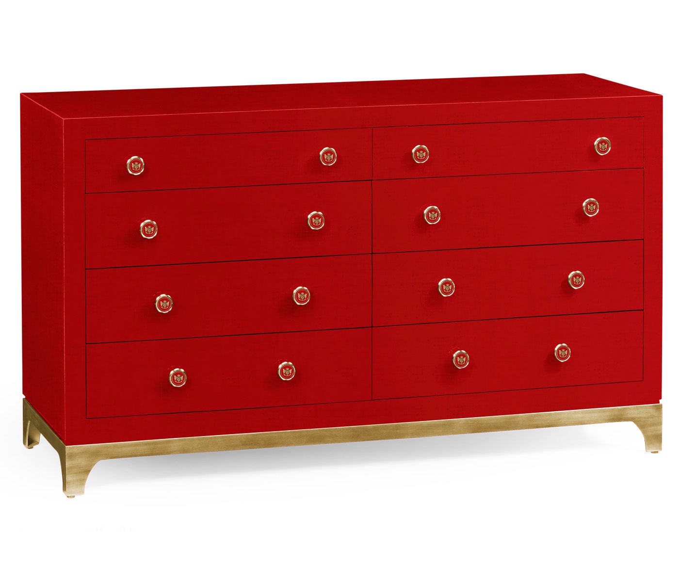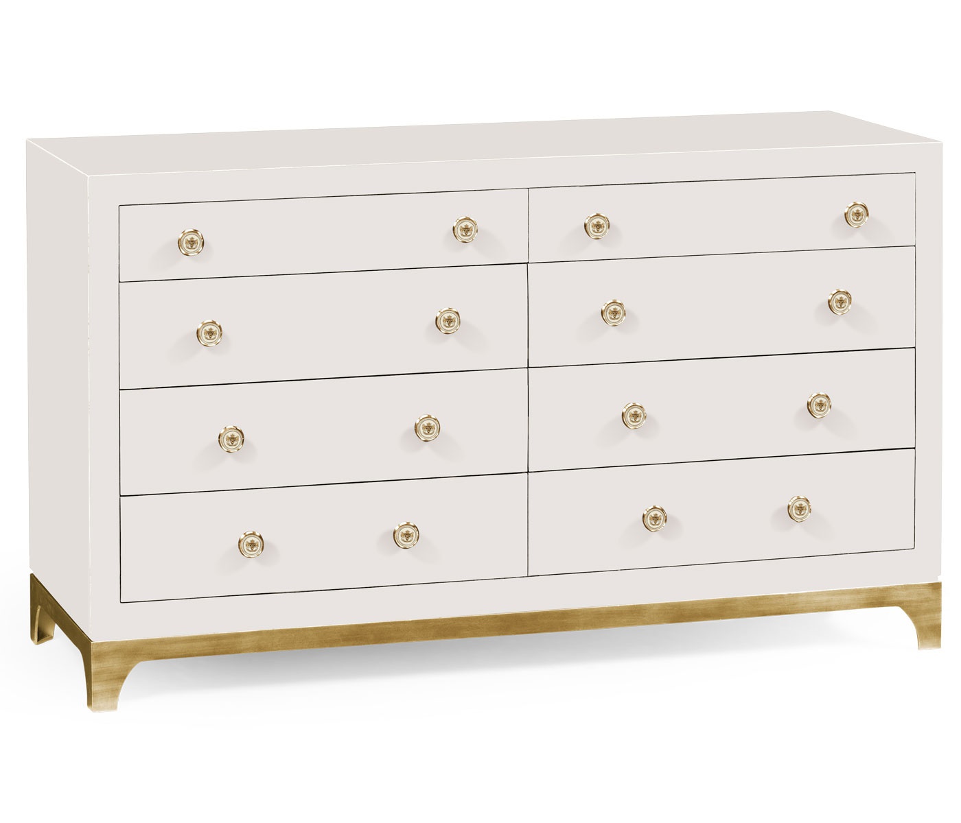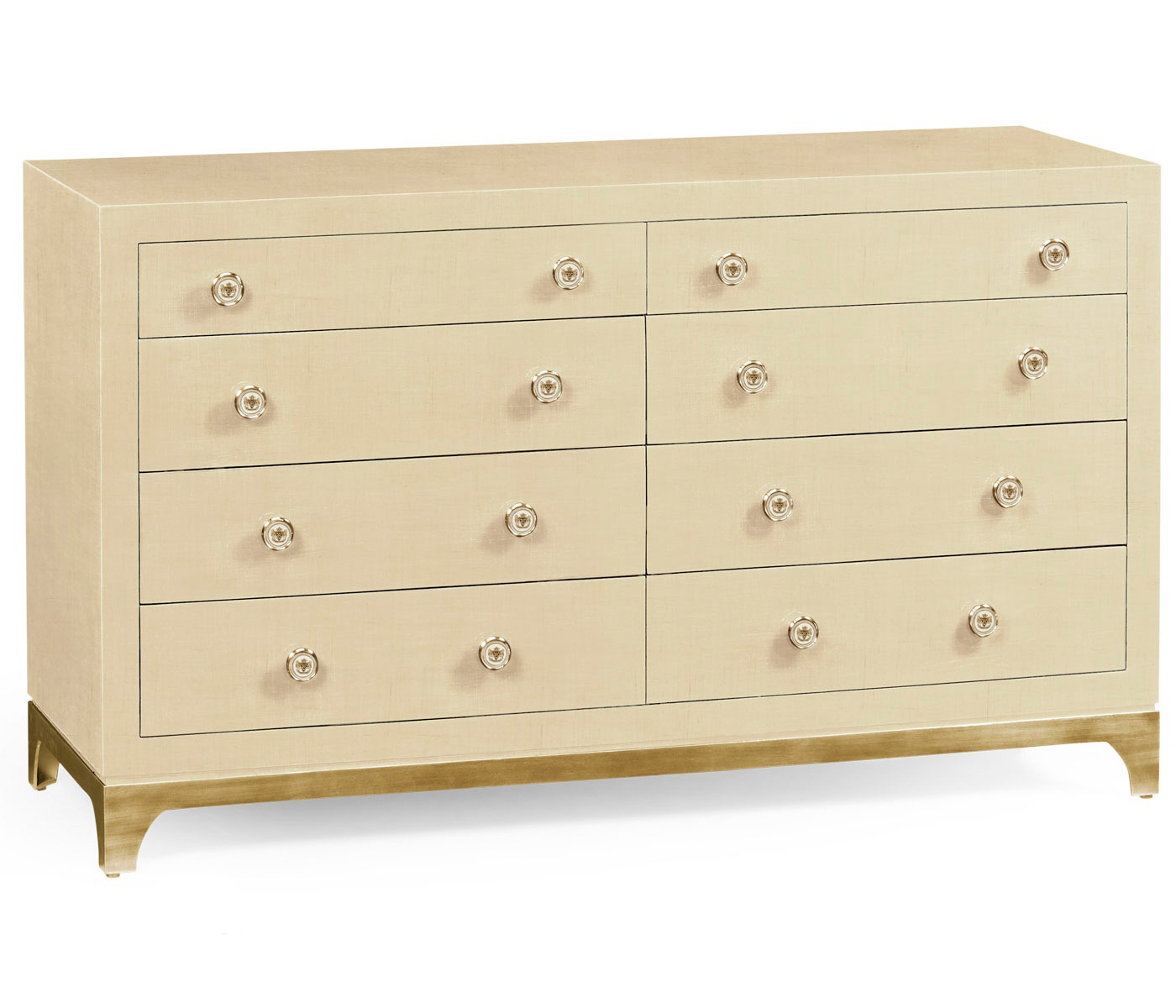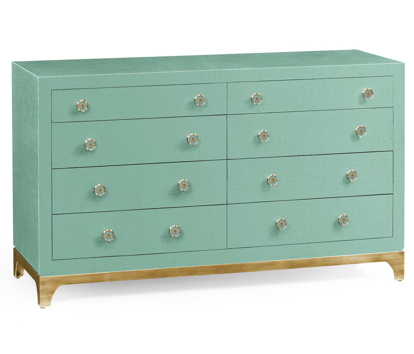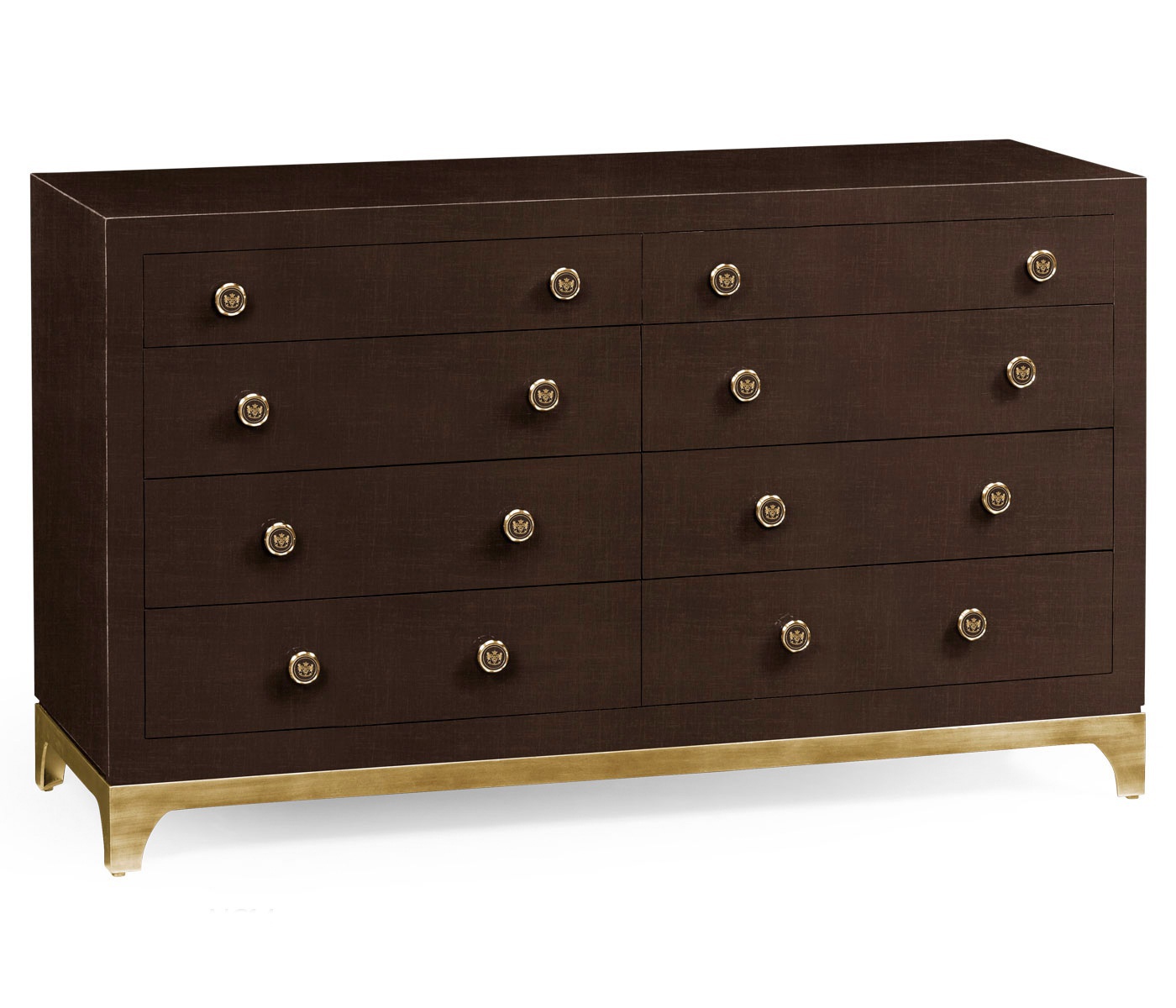 The Alexander Julian chest of drawers from the American manufacturer Jonathan Charles. Gorgeous model with eight drawers. The manufacturer offers finish on a choice of ten colors. Metal bearing Golden color. The handles on the drawers resemble the buttons on a double-breasted jacket.