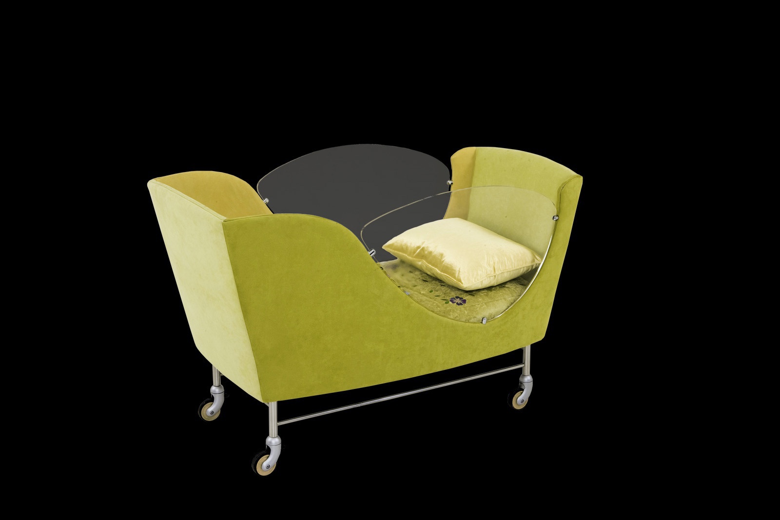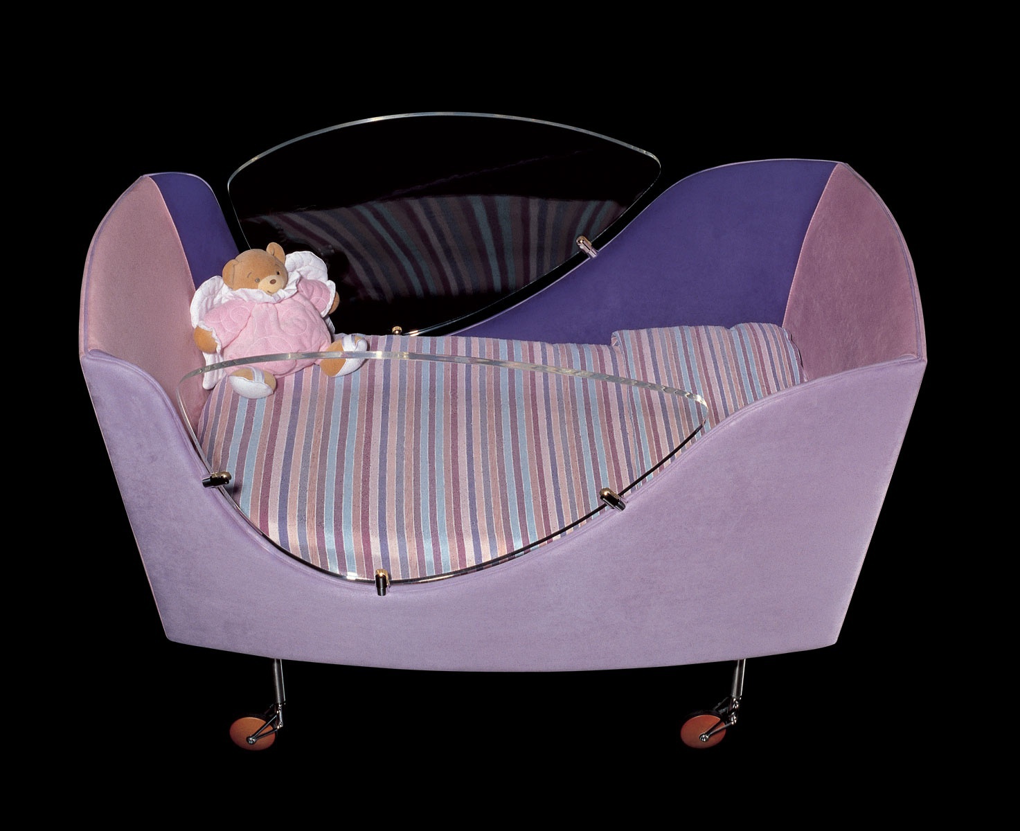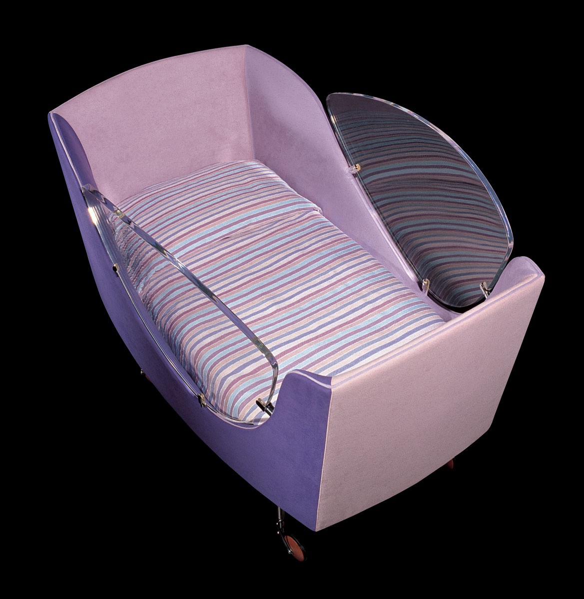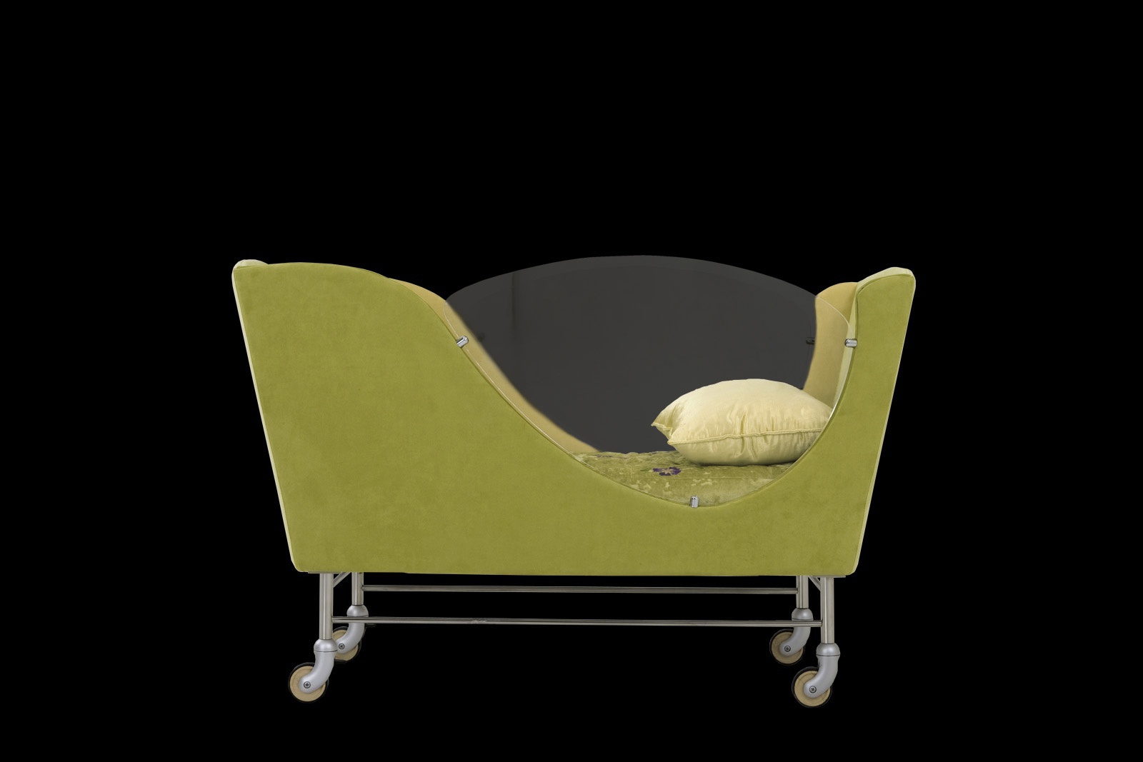 A cot Ginevra culla from the Italian manufacturer ll Loft. Model on wheels, with little Windows made of polycarbonate. Upholstery textiles. Filled with non-deformable polyurethane foam. Color options to choose from a collection company. The modern design.
