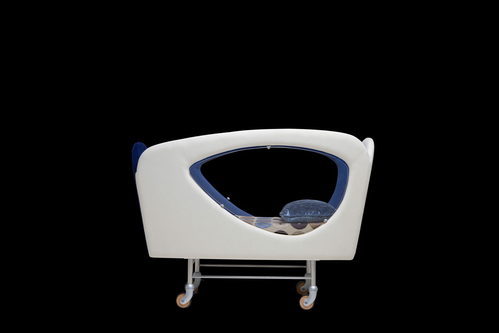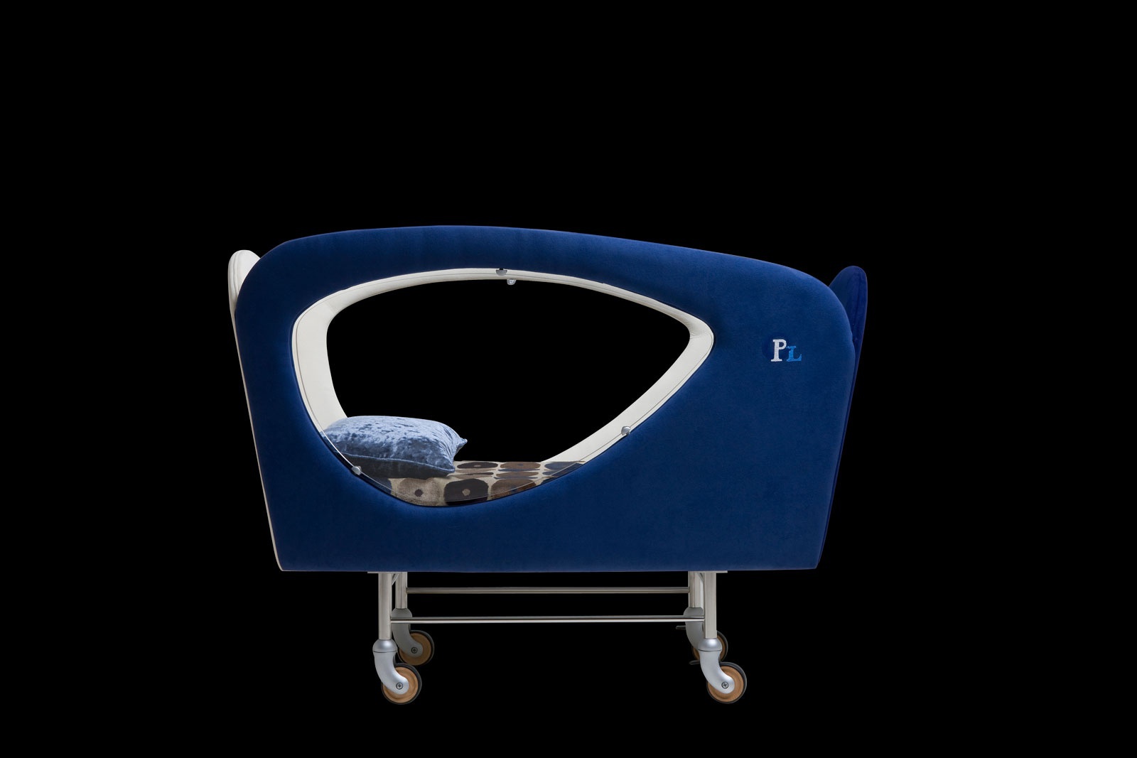 Cradle culla Gpl from the Italian manufacturer ll Loft. The model with Windows of polycarbonate. Upholstery textiles. Filled with non-deformable polyurethane foam. Metal legs on wheels. The modern design. Color options to choose from a collection company.