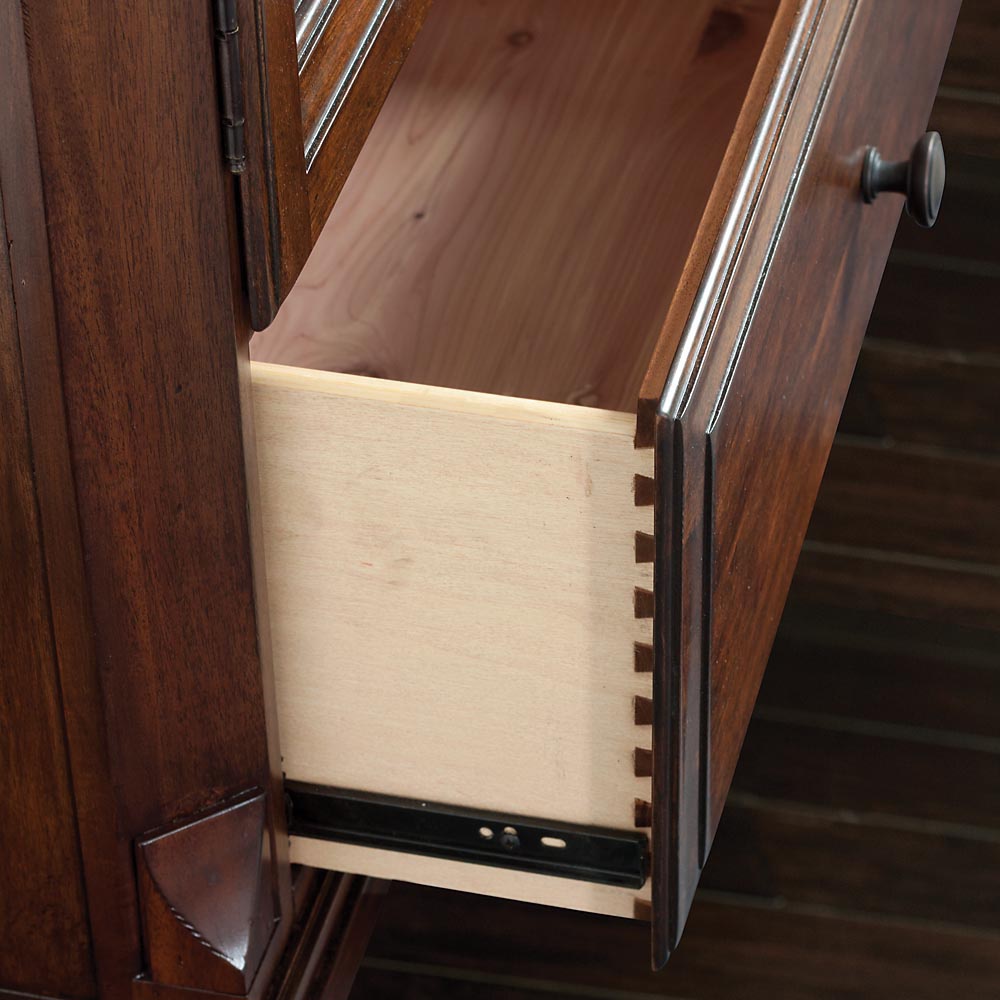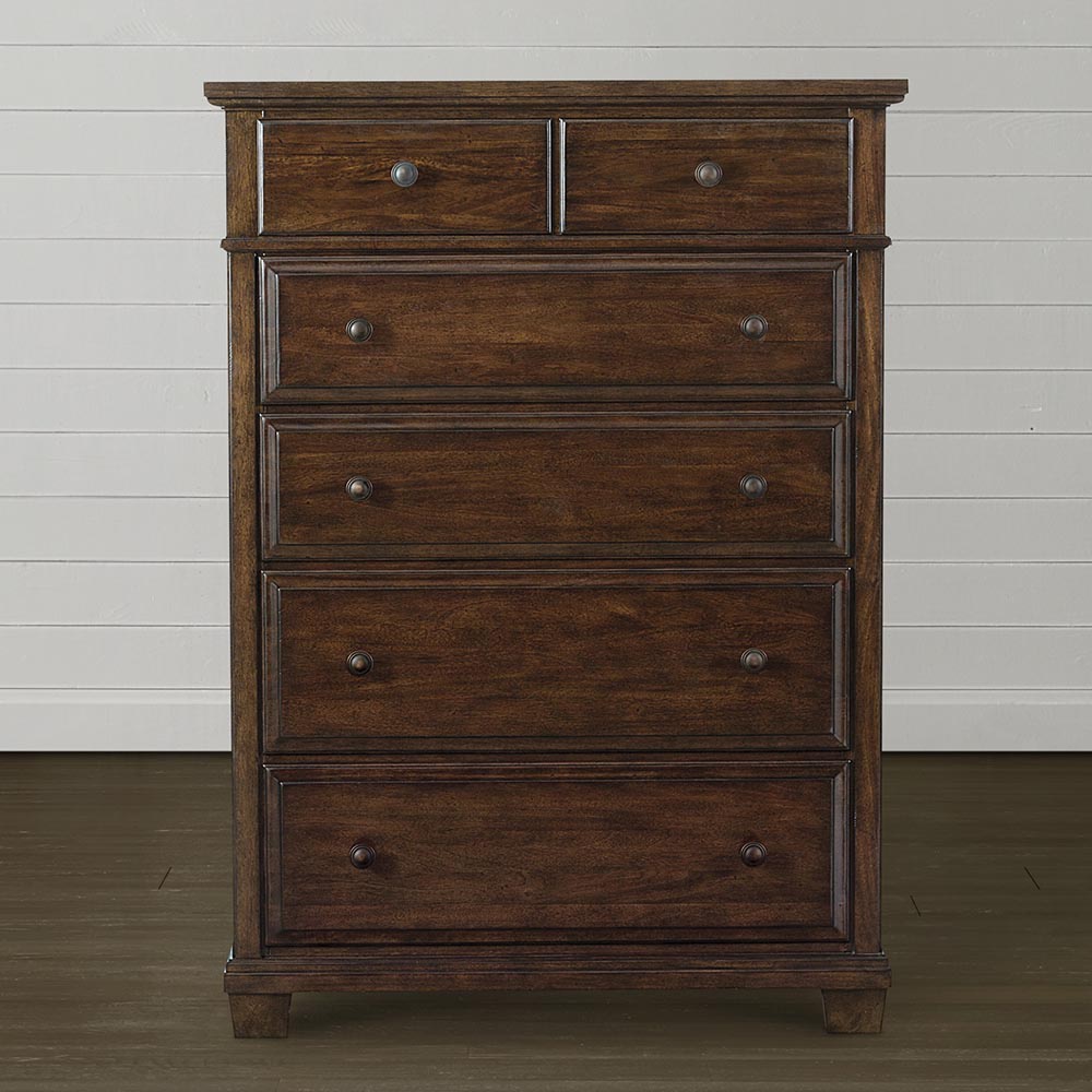 Dresser Highlands from the American manufacturer Bassett. Model small square legs fitted with six drawers. The body is made of wood. Finish offered under the mahogany with patina or by manufacturer's catalogue. Handles made of polished copper. A chest of drawers inspired by antique European models of the 19th century from England and Germany.